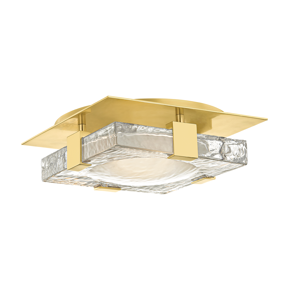 Bourne’s visual heft makes a statement. A very thick pane of glass, etched with a concave divot on its back and clear with a convex mound on its front, is mounted to a canopy or floating backplate, making for a mood-enhancing light diffusion.
