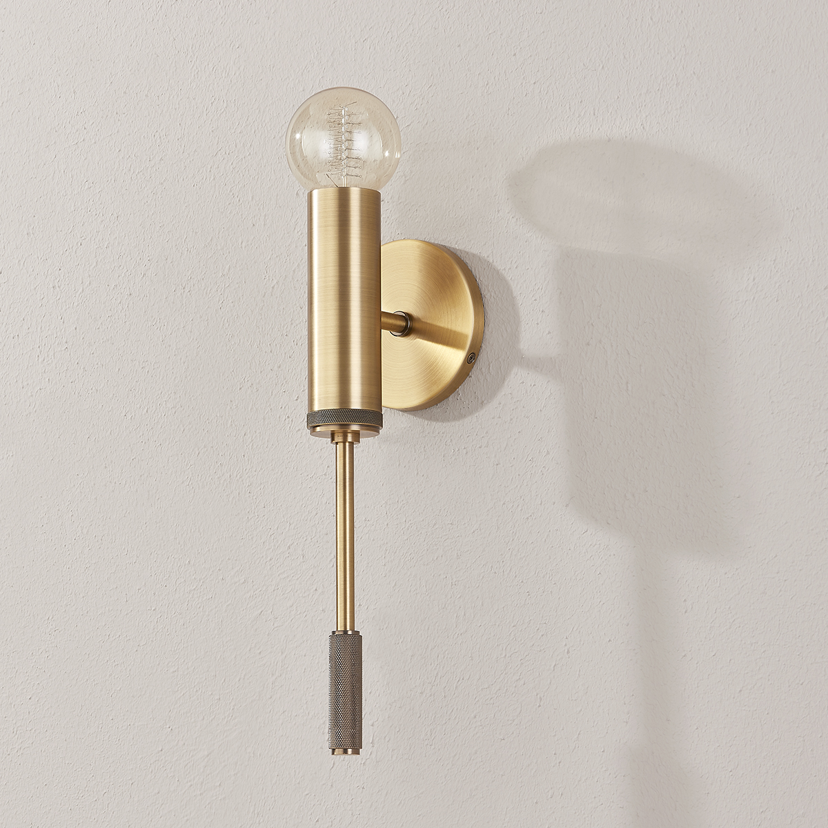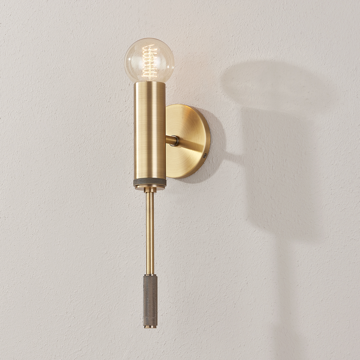 Straight, branch-like Patina Brass arms topped with exposed bulbs define Chino's sleek, modern silhouette. Knurled detailing on the tail and socket cup adds a touch of texture, and the Soft Black hexagonal center gives the chandelier a subtle two-tone finish. Also available as a wall sconce.
