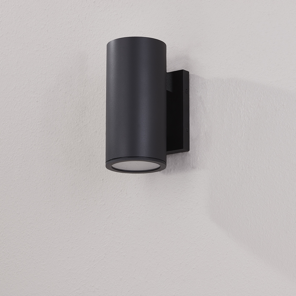 With its smooth, cylindrical shade and square backplate, this exterior sconce feels modern and architectural. Light flows through the etched glass to wash the wall in a soft glow and provide ambient illumination on walkways. Available in a Texture Black or Texture Bronze finish in one- or two-light options to fit any exterior. One-light fixture is Dark-Sky compliant.