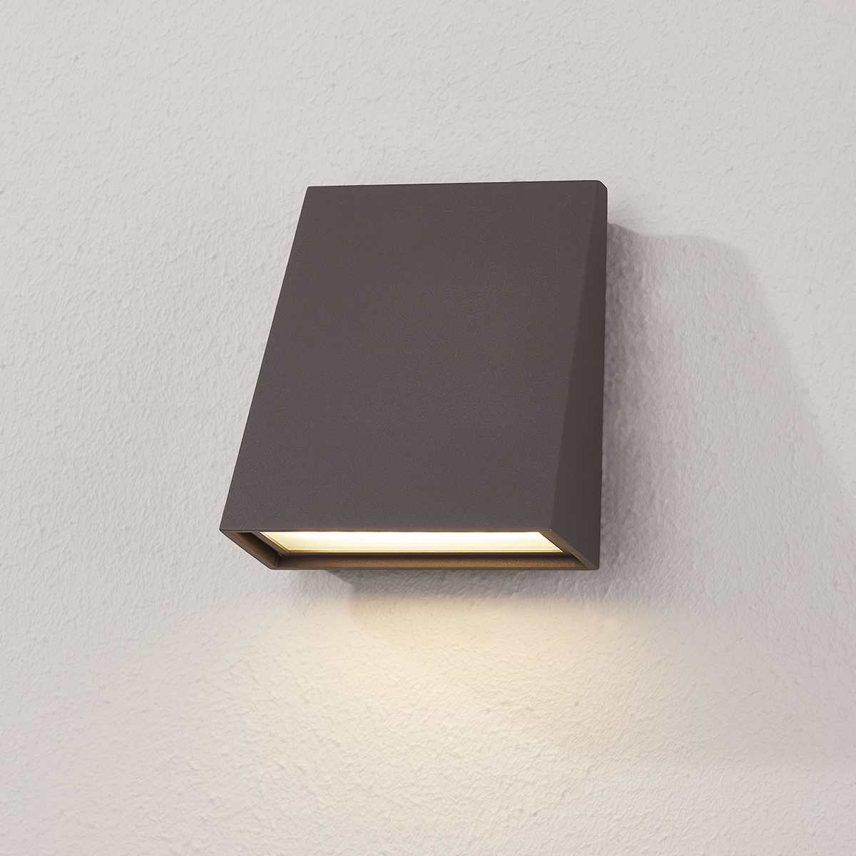 Angling from the wall adds depth and functionality to the straightforward, rectangular silhouette of this outdoor wall sconce. The sleek and architectural design features an etched ""spread"" lens that evenly distributes light from the LED bulb. Available in a Texture Black or Texture Bronze in two sizes, this exterior fixture feels very of-the-moment and will instantly elevate any exterior space.