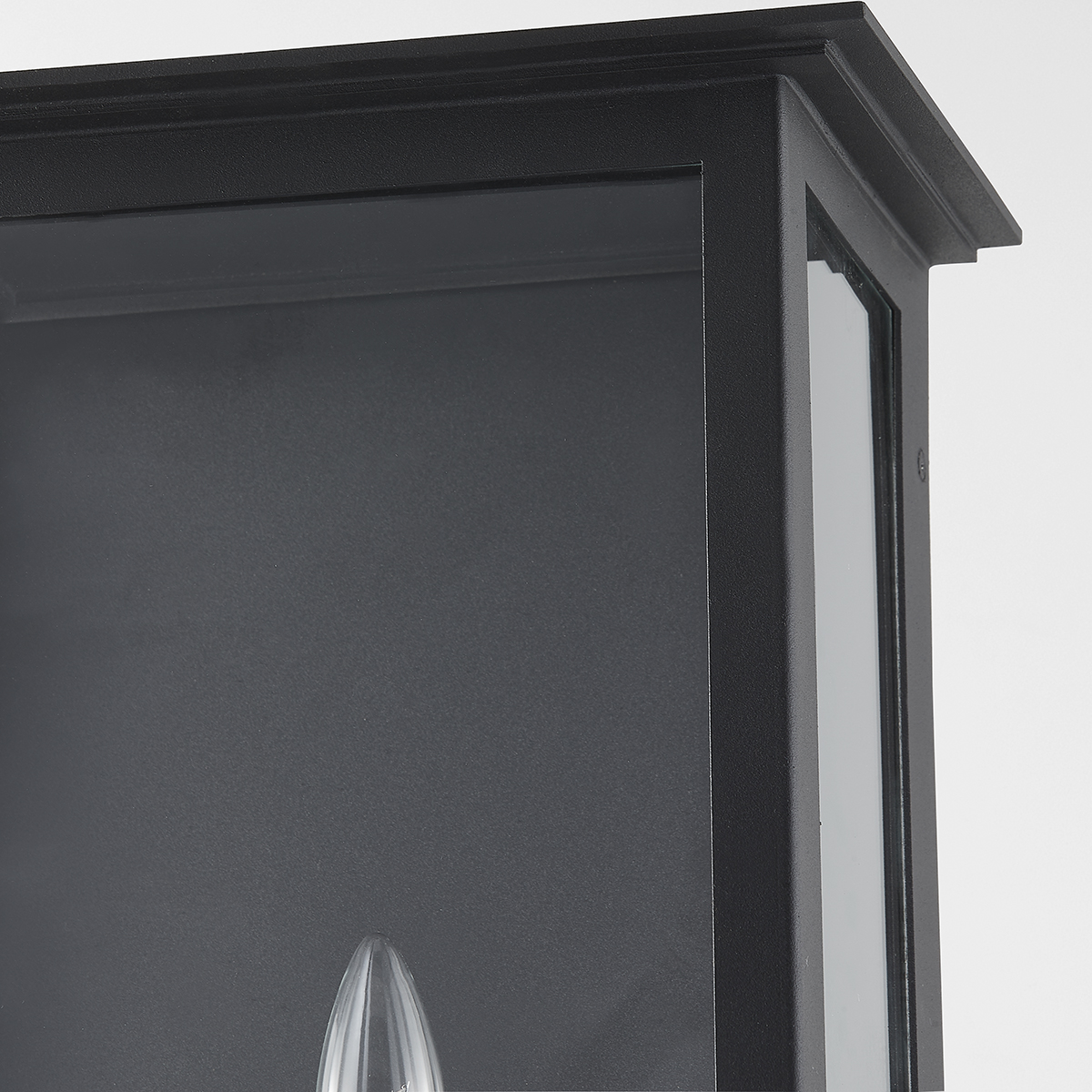 With classic candelabra bulbs, a clean-lined metal framework and clear glass panels, this recognizable lantern silhouette has a timeless elegance and a modern aesthetic. The Texture Black finish adds sophistication and contrasts beautifully with the white candlesticks.