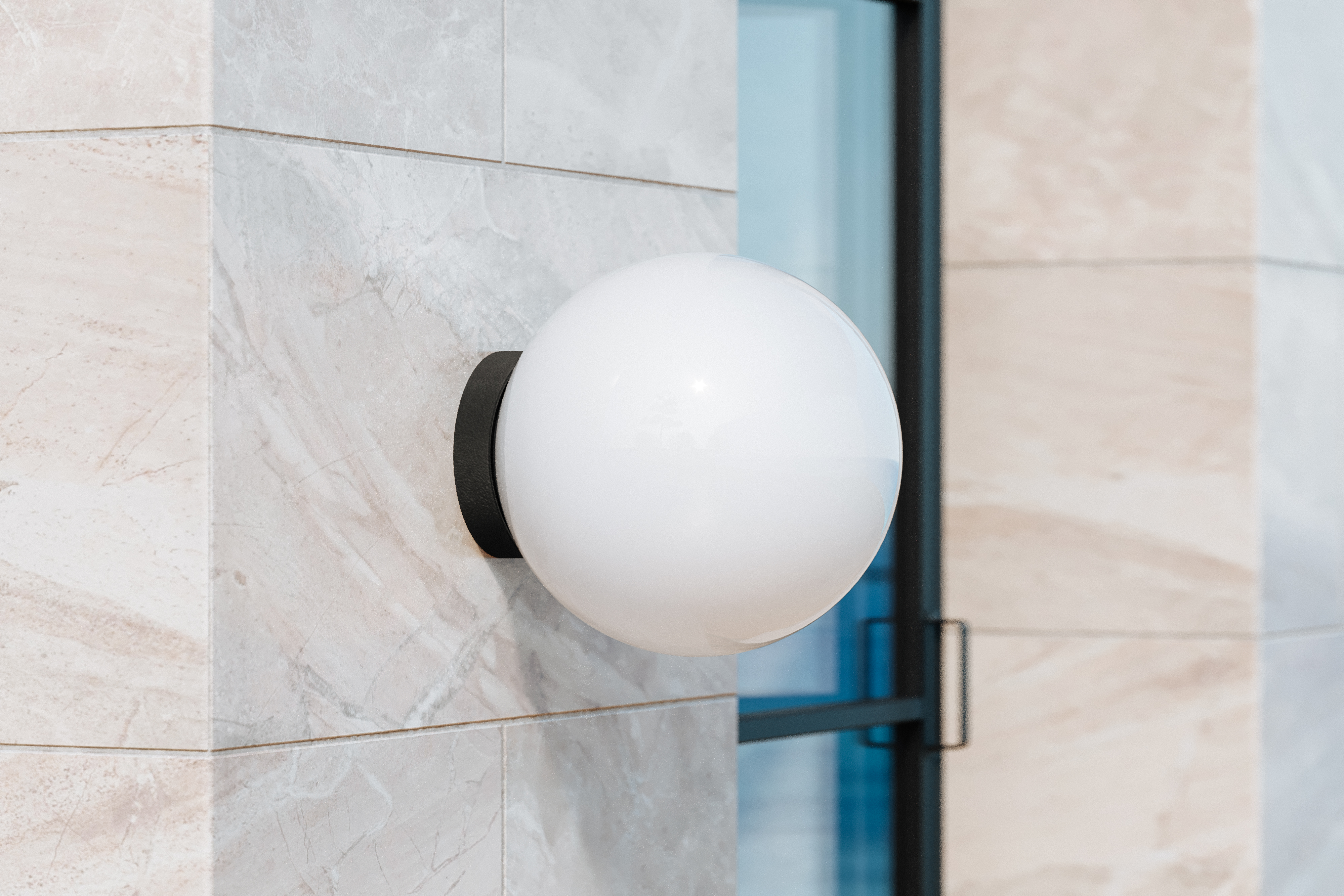 This highly usable fixture can be mounted on the wall or ceiling, indoors or out. With a backplate that nearly disappears from view when mounted, Ansel appears to float in midair. The textured black finish and opal shiny glass globe create a simple, elegant design that pairs with any style.