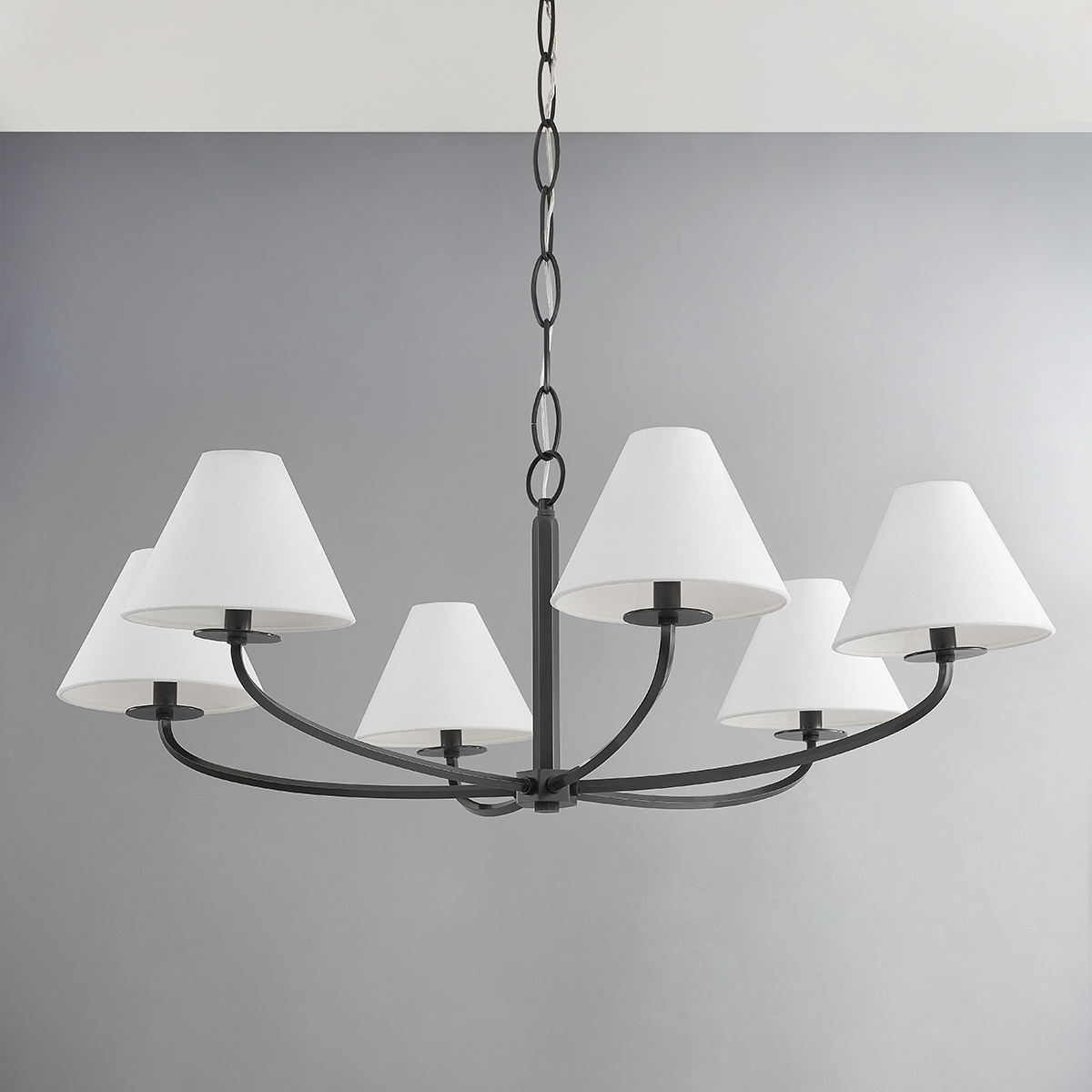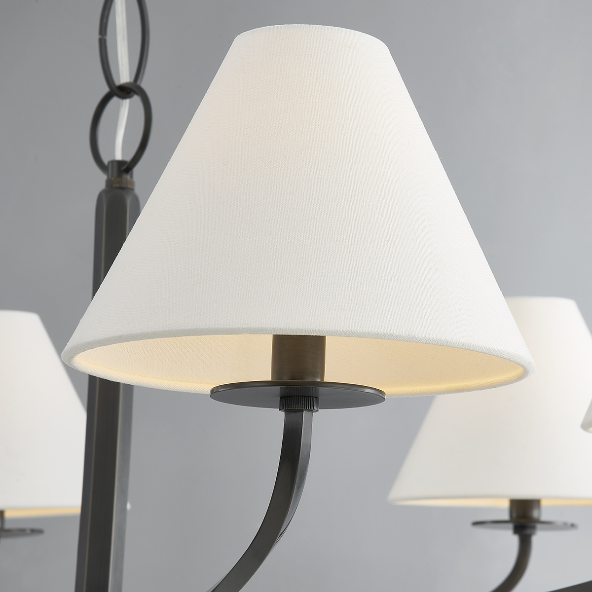 At first glance, Stacey is your classic shaded fixture, but a closer look reveals a familiar silhouette with subtle elevated details. In sconce form, a layered circular backplate with bias cut edge detailing is the base for a swooping square arm that slightly twists into knurled caps at either end. The chandelier highlights the same bias cut technique in an elegant stem. Stacey's stunning metalwork is available in three classic finishes.