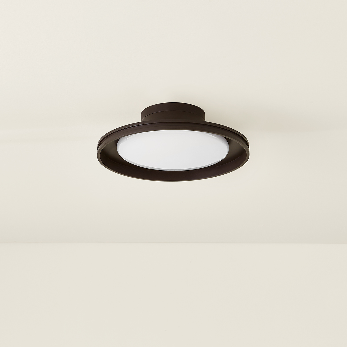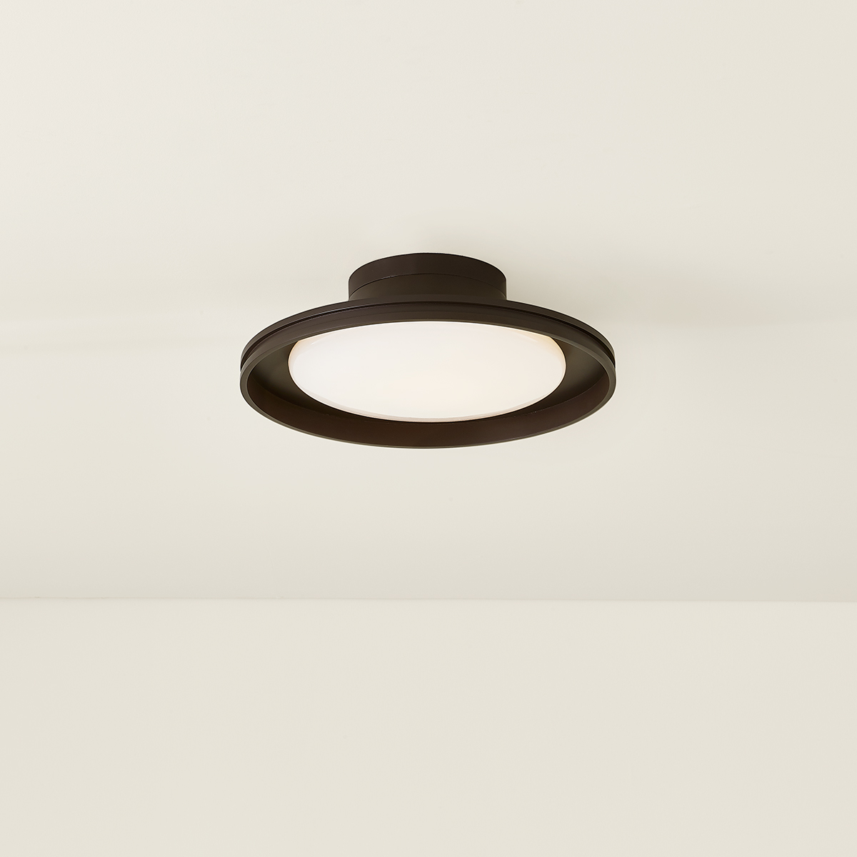 Inspired by the French Riviera, Cannes has an elegant ease characterized by its refined profile and gently curved edges. The flush mount offers an efficient LED light source. The layered construction of the sconce includes a Clear Glass exterior and an Opal Glass interior, while the flush mount features a single Opal glass shade suspended under a Bronze shade.