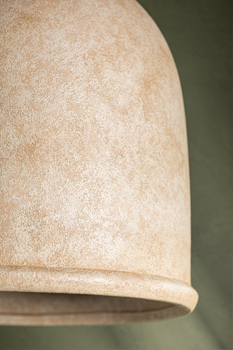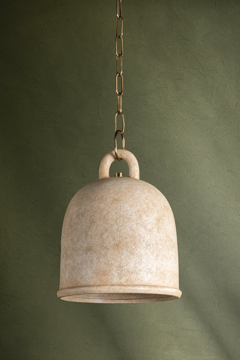 Relic is the epitome of earthy sophistication. The White Ceramic bell-shaped pendant is highly textured, creating a modern form with a rustic feel. The shade fills with a warm light and the curved handle at the top is both functional and beautiful. Gorgeous styled alone or in multiples. Part of our Lauren Liess collection.