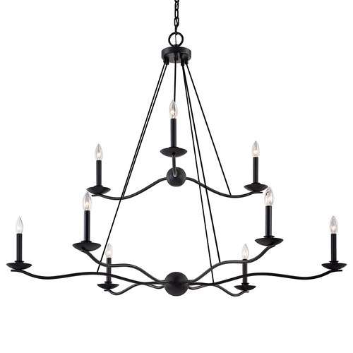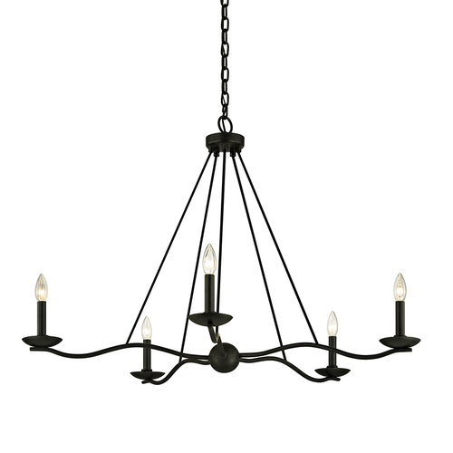 Elevate outdoor living spaces with this six-light exterior chandelier. Curved arms in a Forged Iron finish stem from a center orb and hold candlesticks covered with glass to protect them from the elements. The slender, hooked chain detailing is the perfect complement to this gorgeous silhouette.