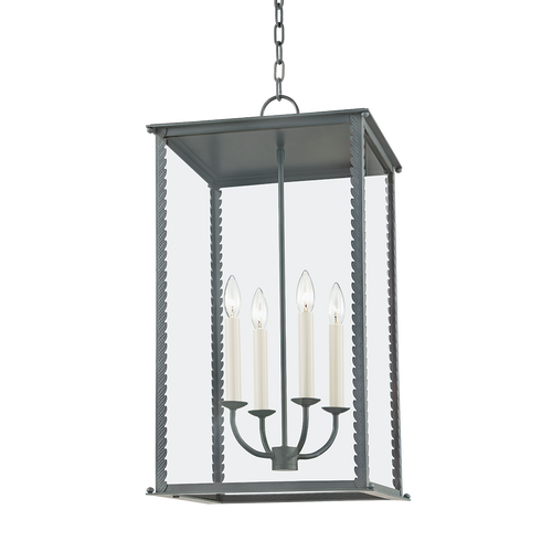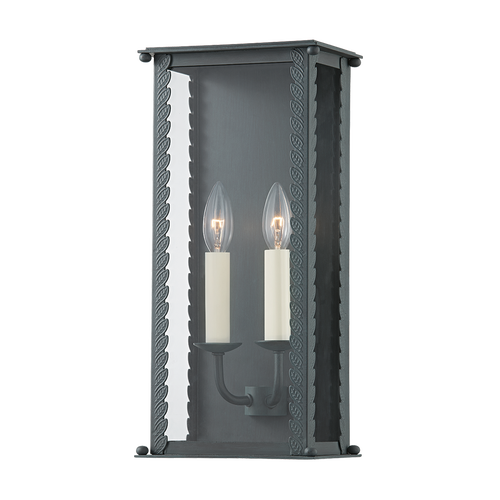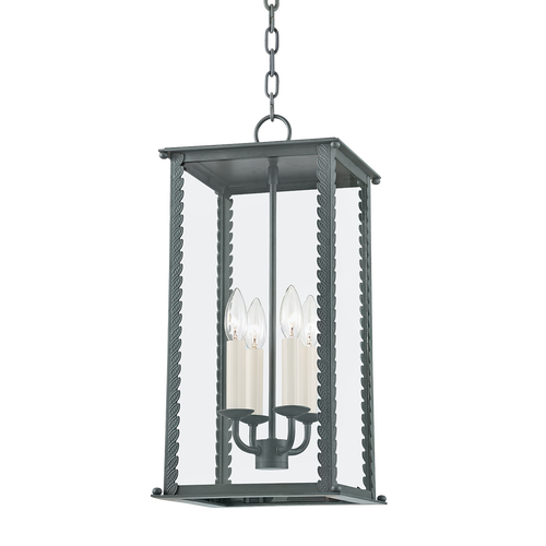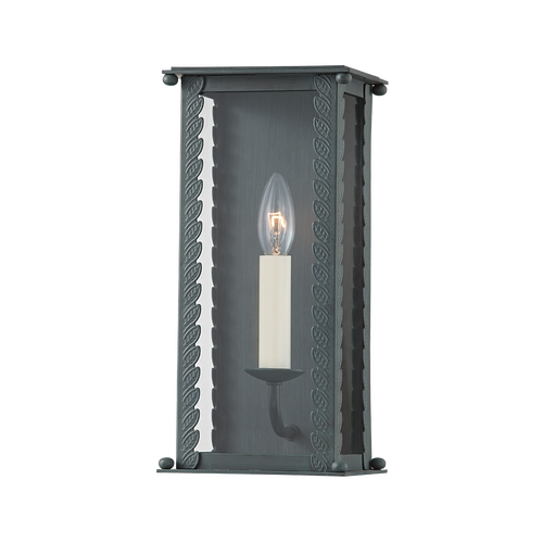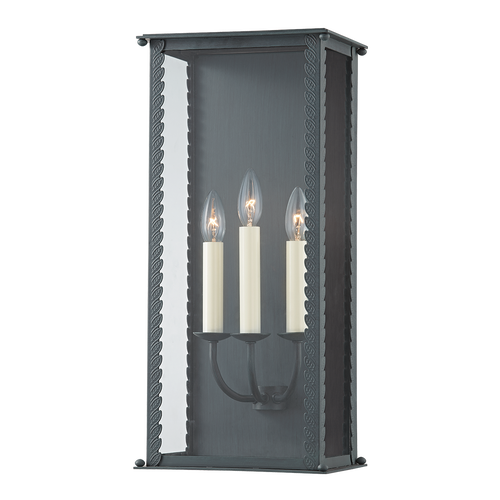 Zuma embraces its surroundings, taking cues from the natural world to inform its captivating silhouette. This candelabra style cage light features a delicate leaf detail climbing up the edges, revealing demure finials on each corner. Clear glass allows you to admire the candlestick lights clearly. Available in French iron or verdigris finish. Available as a one, two, or three-light wall sconce, and pendant in two sizes.