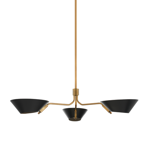 Sacramento makes a bold statement while keeping a low profile. Simple metal shades are mounted at the end of long, sweeping arms creating a design that is visually appealing without taking up a lot of space. With shades that are open at both ends, the wider opening at the top allows light to spread freely above while the narrower bottom opening funnels more direct light downward. Patina brass combines with either a soft black or soft sand finish to give the fixture a natural beauty.