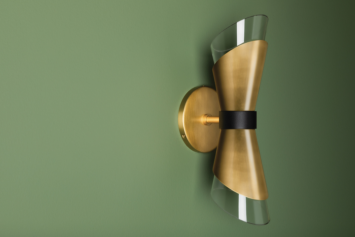 Inspired by the runway, Angie features a metal-wrapped asymmetrical glass shade with a cinched waist for dramatic effect. Available in different styles and finishes, Angie can go from soft and warm in aged brass or cool and captivating in polished nickel. Talk about a style chameleon!