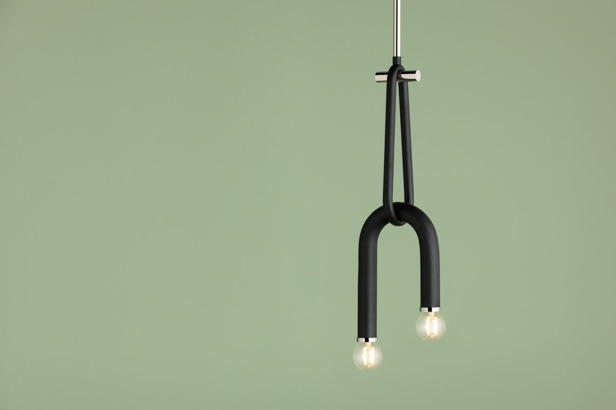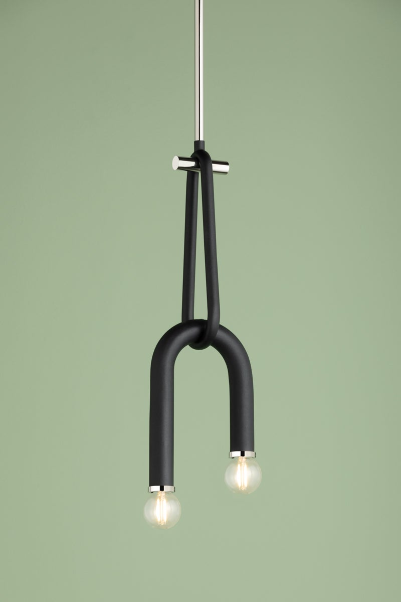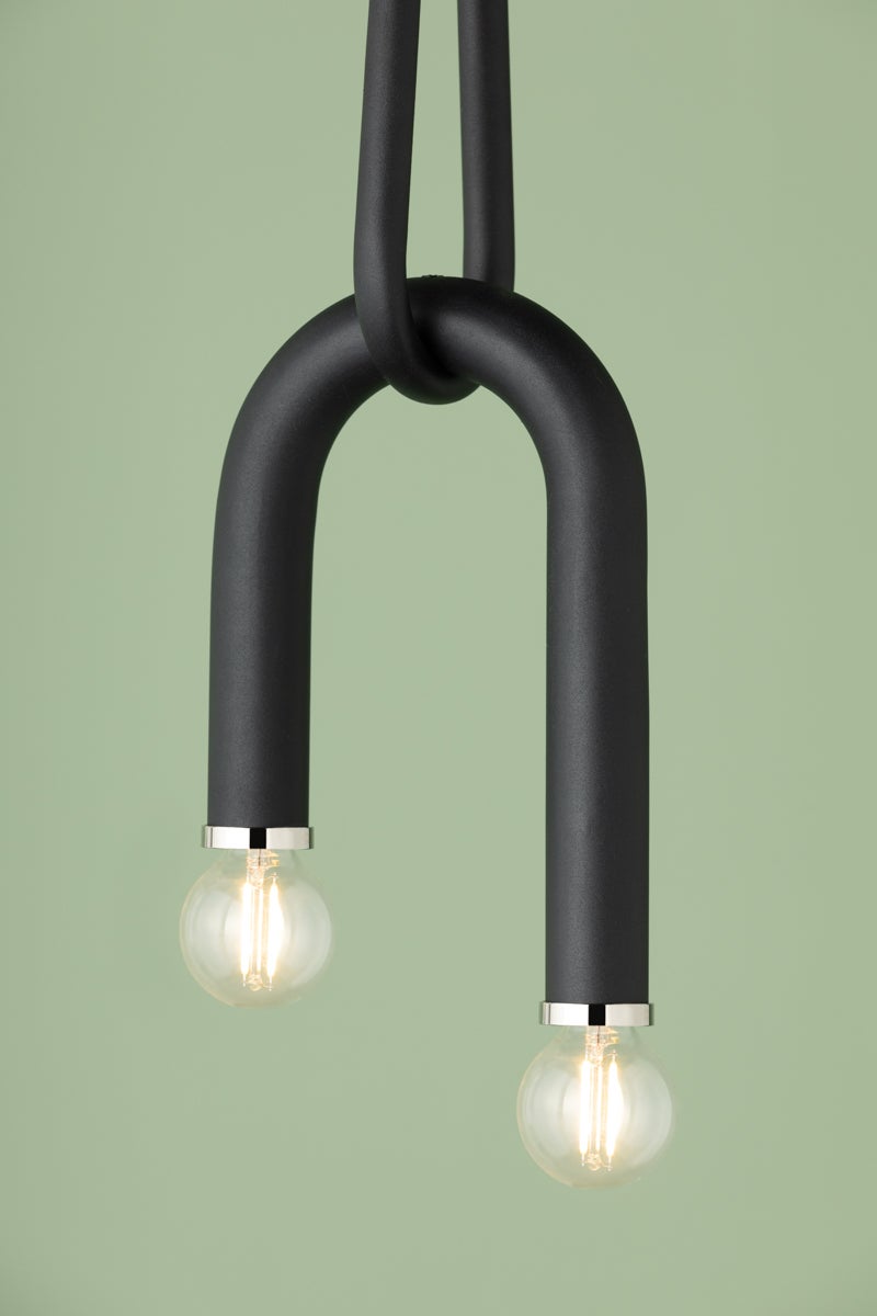 Whimsical for the win. A playful take on modern design, Whit features a sweeping black metal tube draped over aged brass or polished nickel accents. The uneven lines create visual interest and allow light to shine at slightly different heights. Choose from a pendant, chandelier, linear, floor lamp or wall sconce that can be mounted to provide either uplight or downlight.