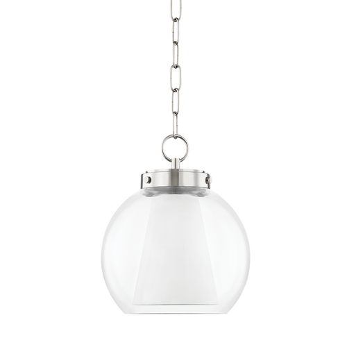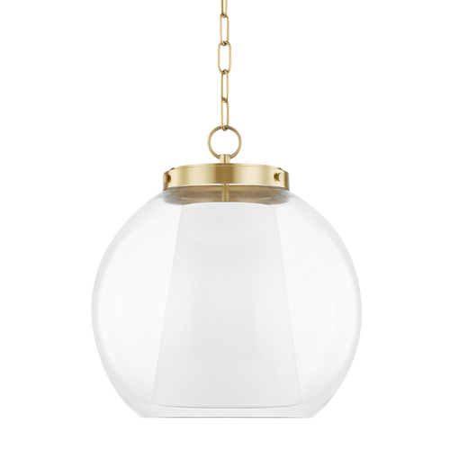 A chain cord, metal finish canopy and unique shade-within-a-shade design make this Sasha totally fierce. A white, Belgian-linen, cone-shaped shade is covered by a clear glass globe shade to emit a soft glow that shines bright. With two pendant sizes in three finishes (Aged Brass, Old Bronze and Polished Nickel) there's something for every space and taste.