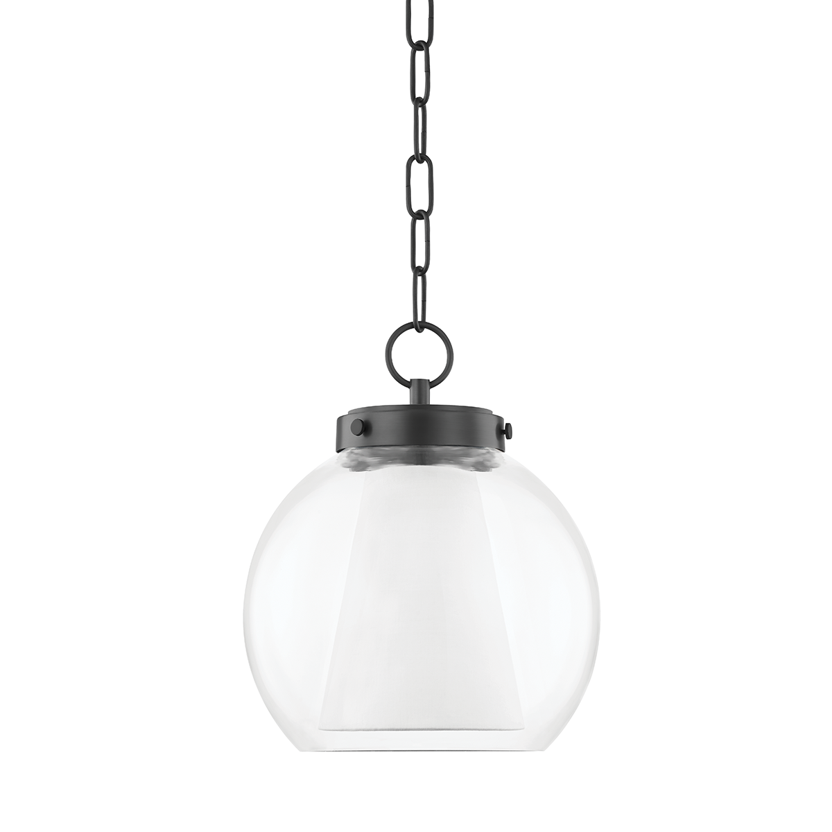 A chain cord, metal finish canopy and unique shade-within-a-shade design make this Sasha totally fierce. A white, Belgian-linen, cone-shaped shade is covered by a clear glass globe shade to emit a soft glow that shines bright. With two pendant sizes in three finishes (Aged Brass, Old Bronze and Polished Nickel) there's something for every space and taste.
