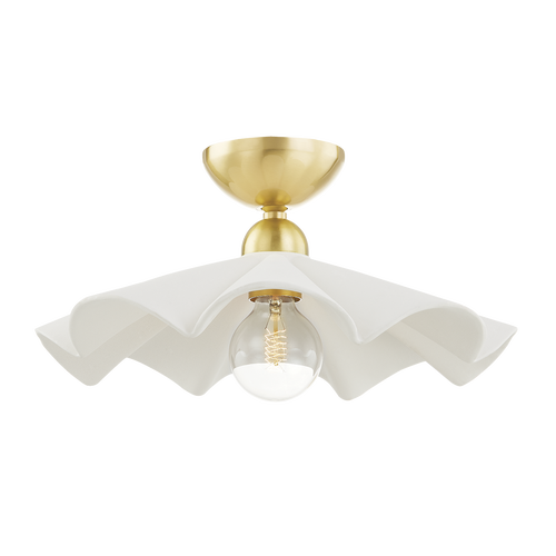 A little wit, a little whimsy, Tinsley brings southern charm with a tinge of sass. Brimming with feminine flair, she's poised to be a new fan favorite. A white ceramic collar flutters effortlessly, offering subtle contrast against the aged brass pipe. An exposed globe bulb finishes off the look, providing direct light over a bar, kitchen island, or really anywhere that could use a little magic.