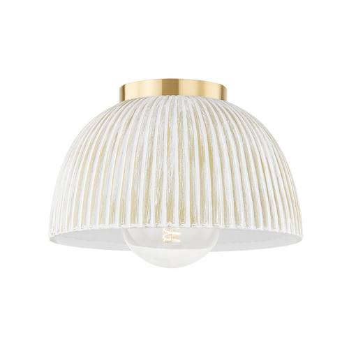 Penelope stands out as a flush mount with flare. The fluted ceramic shade is simply divine, featuring a vintage gold leaf interior that lends an earthiness to the design. An opaque shade houses a single light source, diffusing the light naturally.