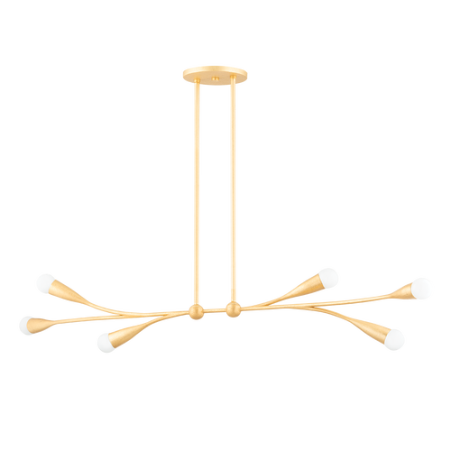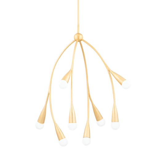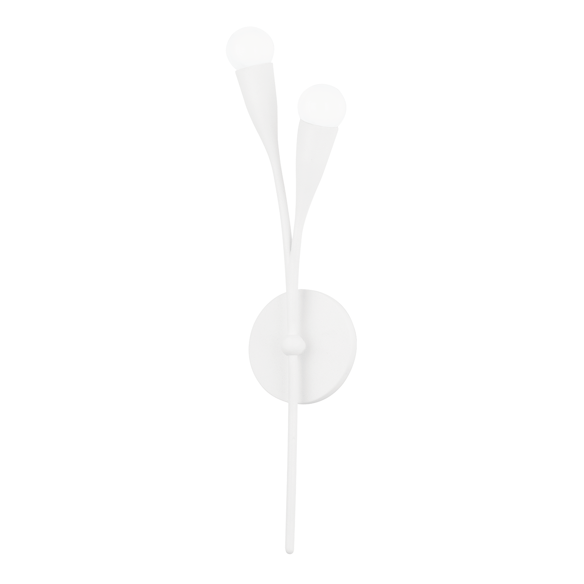 Bursting with style, Elsa draws inspiration from cherry blossom trees. Slender arms branch out from small spheres, ending in buds of petite matte white globes. This soothing, organic design is available as a wall sconce, pendant, linear, and chandelier in Gold Leaf and Textured White. For the best look, we recommend G16.5 incandescent matte white finish bulbs.