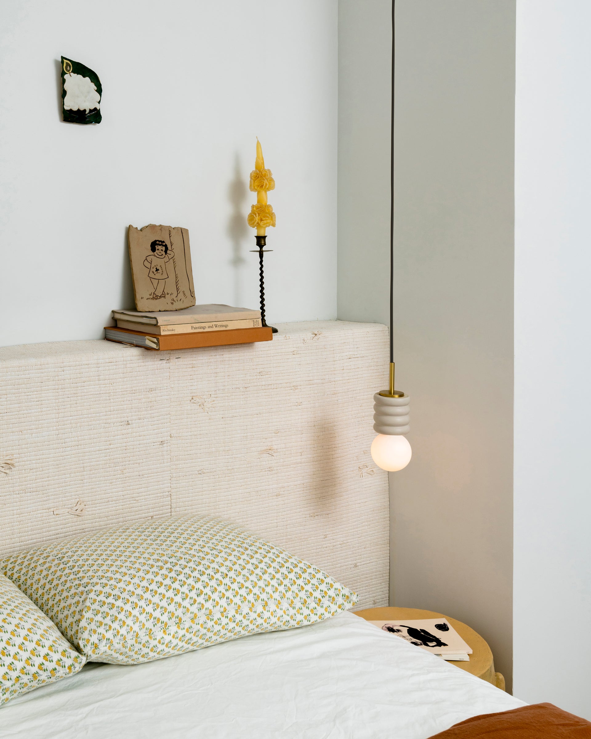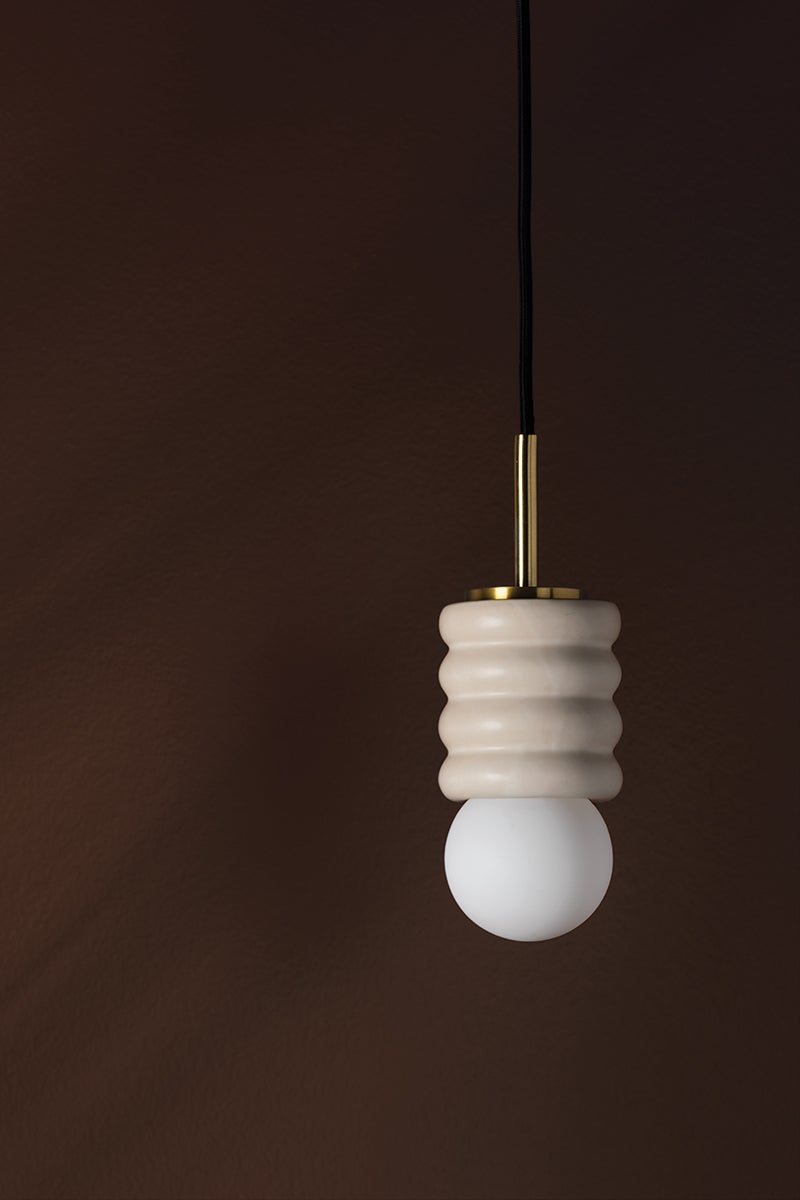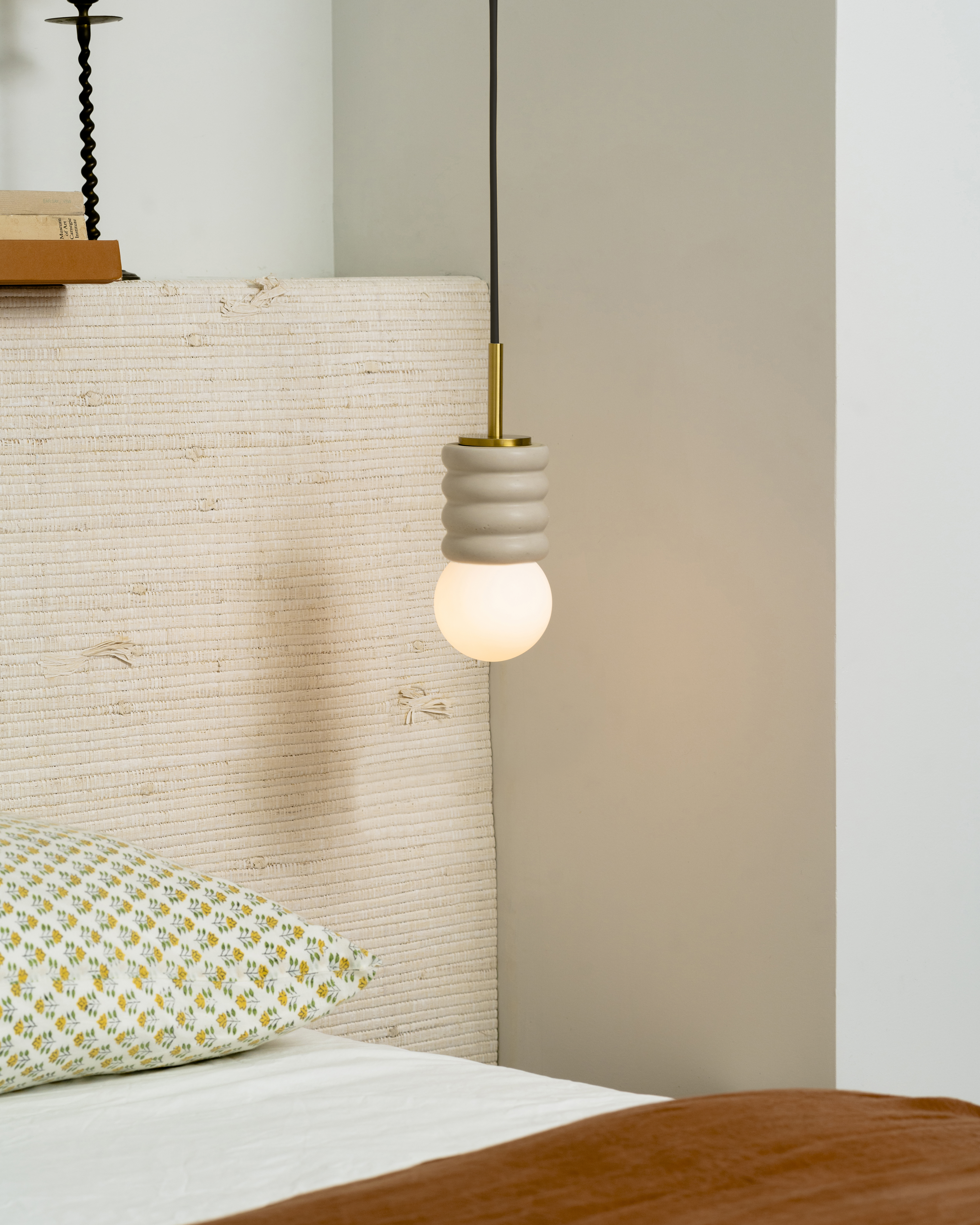 Bibi is soft, soothing, and simply stunning. Pillows of ceramic antique ivory stack to form the base of this contemporary design, inspired by the designer's upholstered BB stools. With its neutral palette and options, including a one- or two-light wall sconce, one-light flush mount, or one-light pendant, there's a place for this stylish and versatile piece in any room of the home.