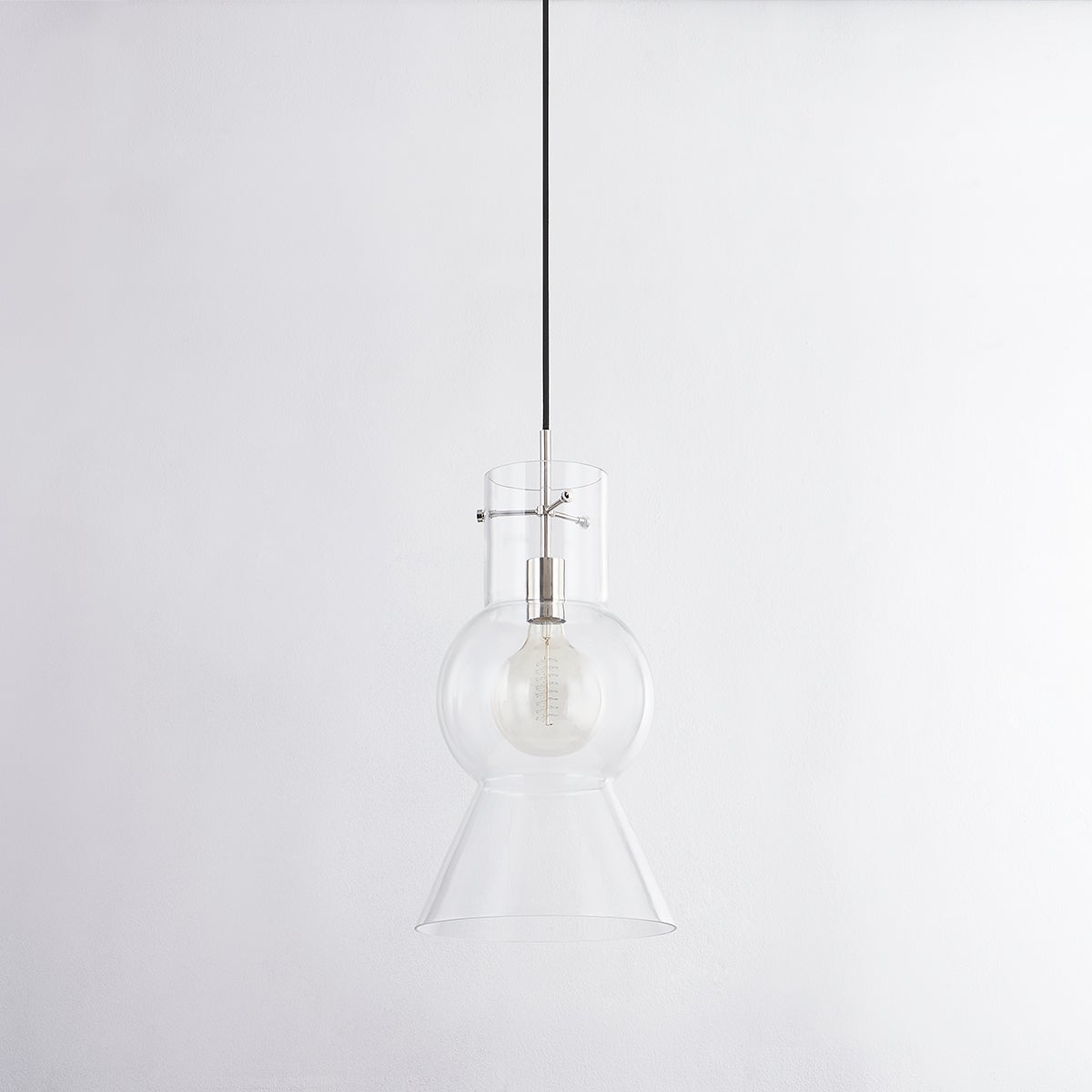 Mirabel is playful in spirit yet endlessly versatile. The totem shape offers more interest than a standard shade, sparking conversation and intrigue. Aged brass, polished nickel, or soft black hardware peeks through the glass shade, adding some flair to its simplistic form. Also available in a smaller size.