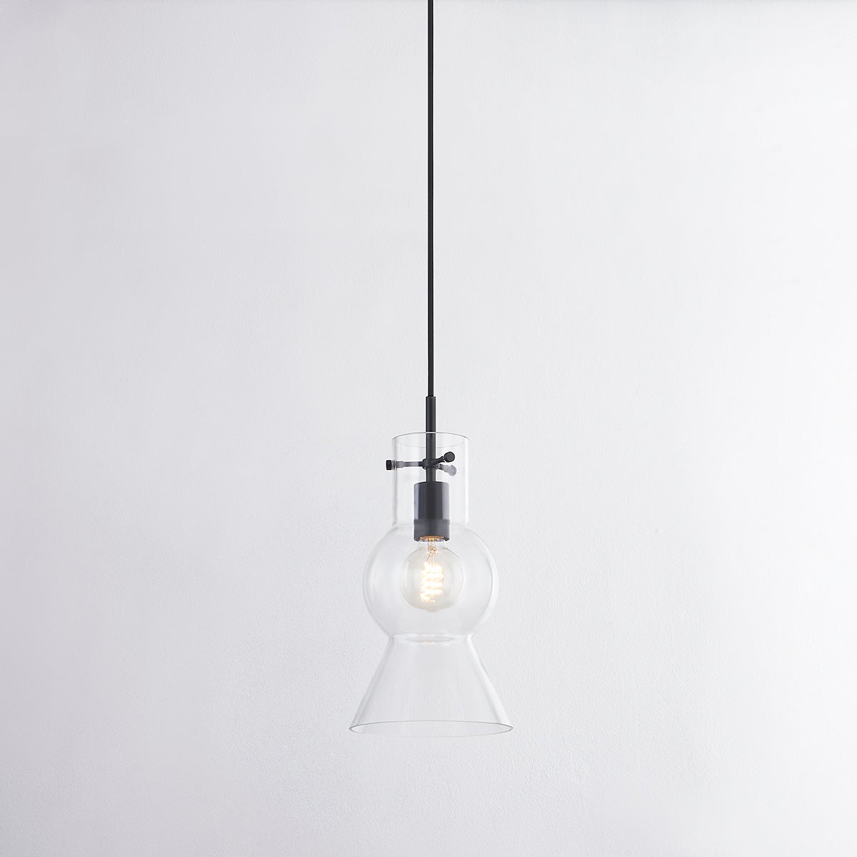 Mirabel is playful in spirit yet endlessly versatile. The totem shape offers more interest than a standard shade, sparking conversation and intrigue. Aged brass, polished nickel, or soft black hardware peeks through the glass shade, adding some flair to its simplistic form. Also available in a smaller size.