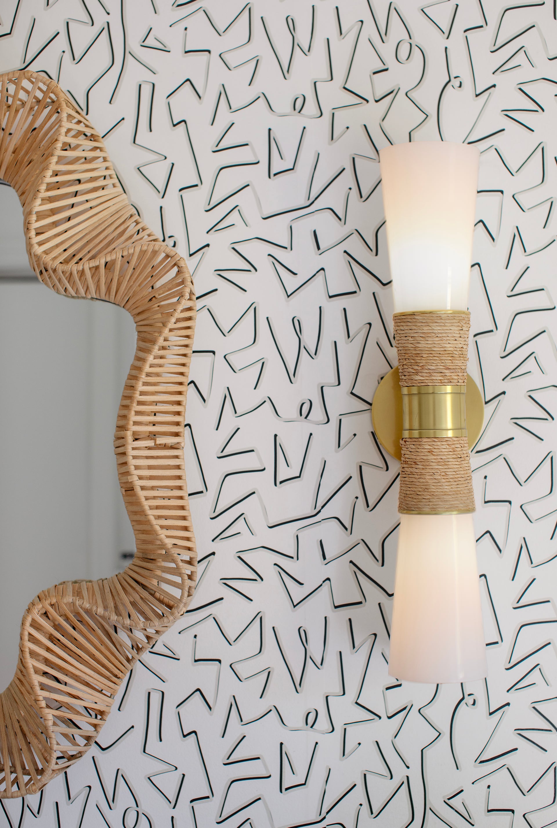 Balancing coastal charm with quiet luxury, Mica emits a gentle wash of light in kitchens and powder rooms. Its sleek silhouette is accented by wrapped raffia, an organic touch that makes this fixture feel approachable. An opal shiny glass shade diffuses light, which reflects off the Aged Brass metalwork. Mica is available as a pendant in two sizes, or a wall sconce with one or two shades. Part of our Megan Molten x Mitzi Tastemakers collection.