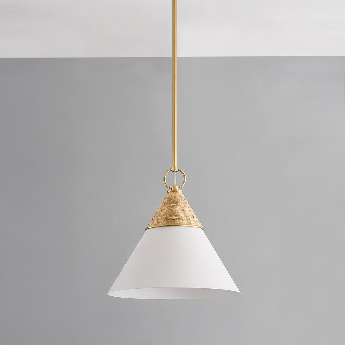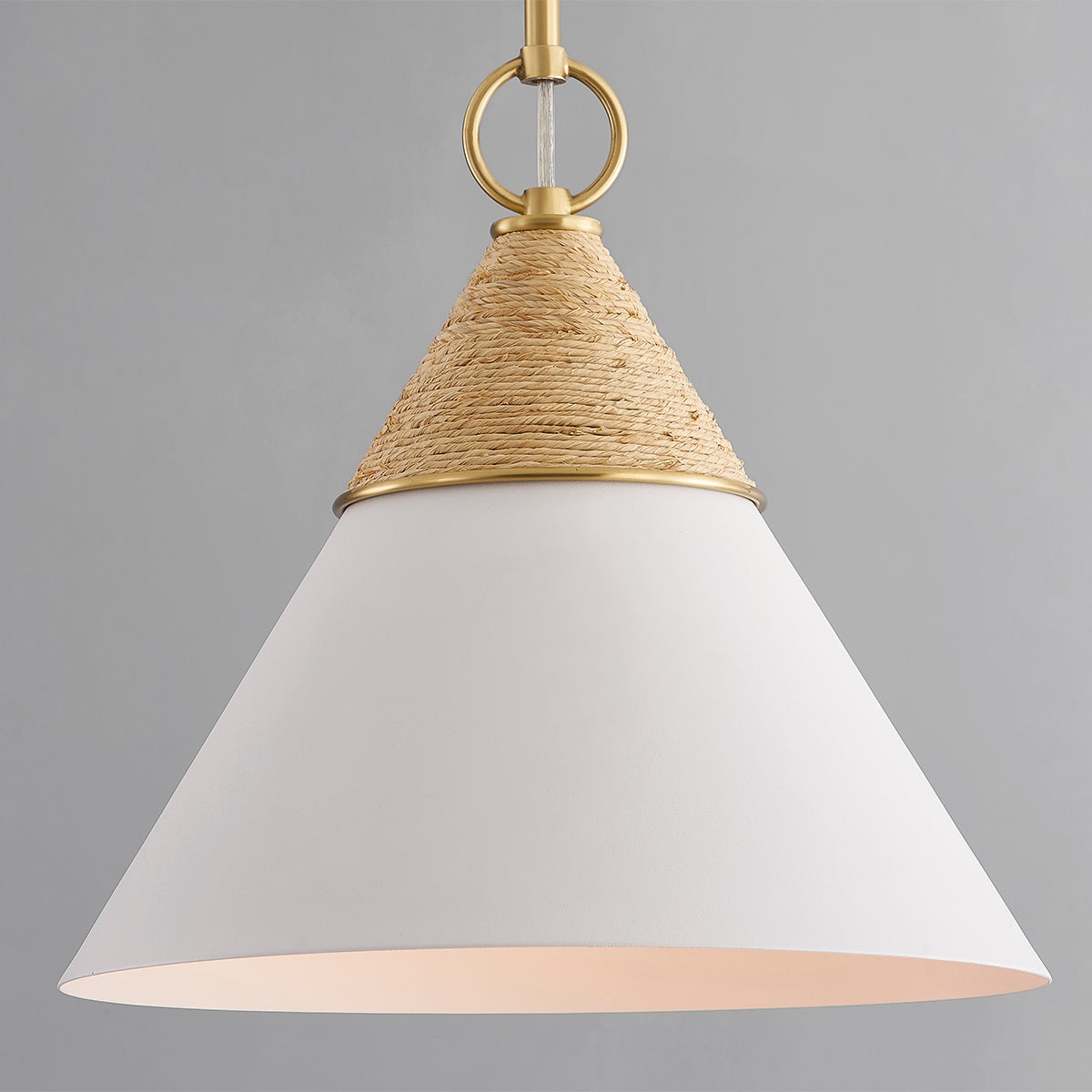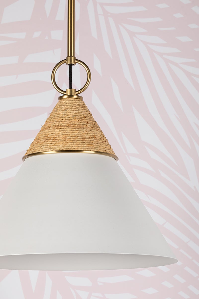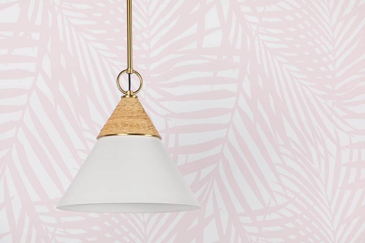 Balancing coastal charm with quiet luxury, Mica emits a gentle wash of light in kitchens and powder rooms. Its sleek silhouette is accented by wrapped raffia, an organic touch that makes this fixture feel approachable. An opal shiny glass shade diffuses light, which reflects off the Aged Brass metalwork. Mica is available as a pendant in two sizes, or a wall sconce with one or two shades. Part of our Megan Molten x Mitzi Tastemakers collection.