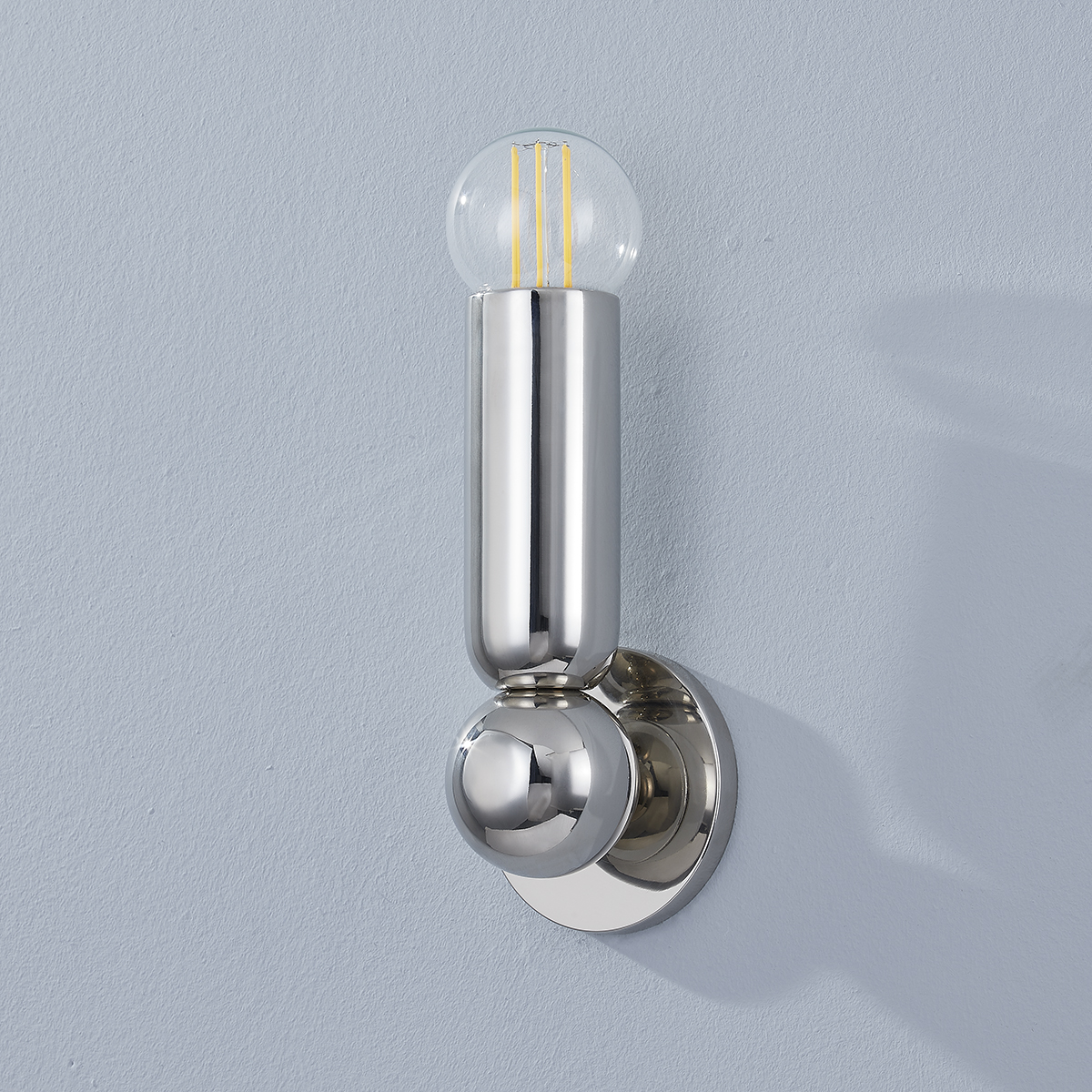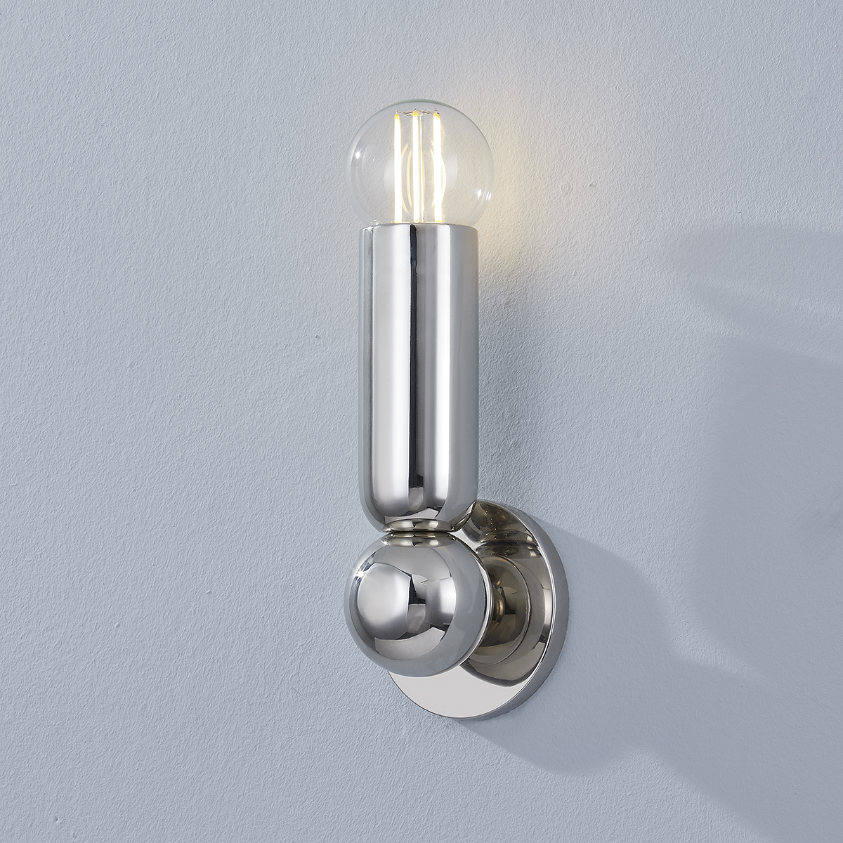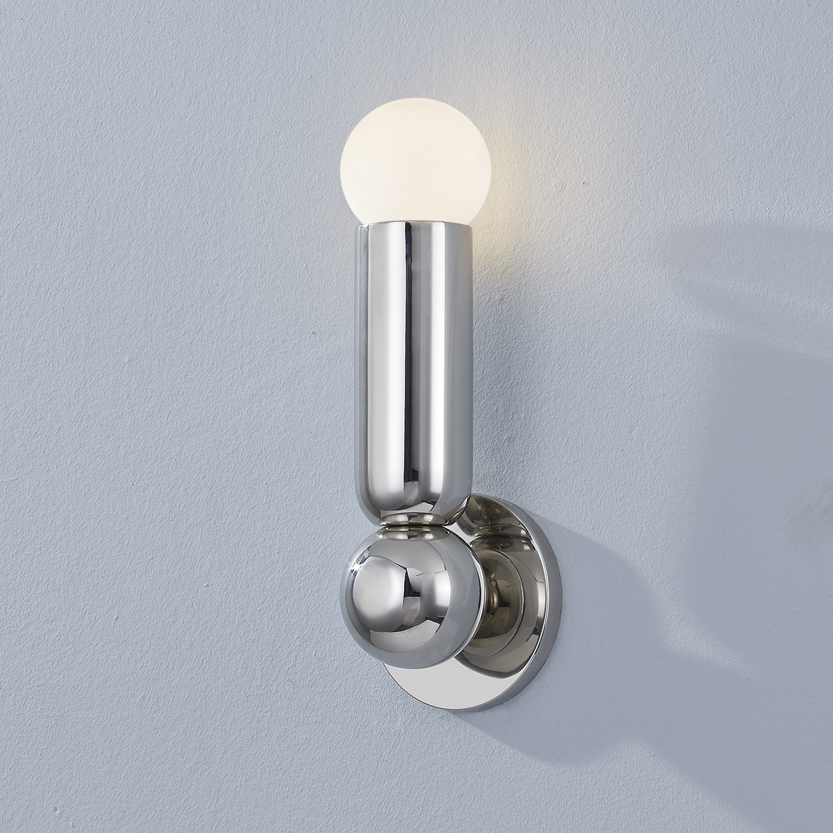 Modern yet industrial, the Lolly Wall Sconce and flush mount captures your attention with sleek curves and a vibrant aged brass or polished nickel finish. Minimalist in nature, Lolly is no wallflower, commanding the room through bold form.