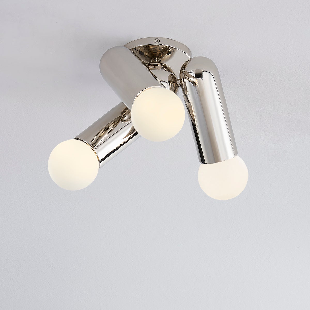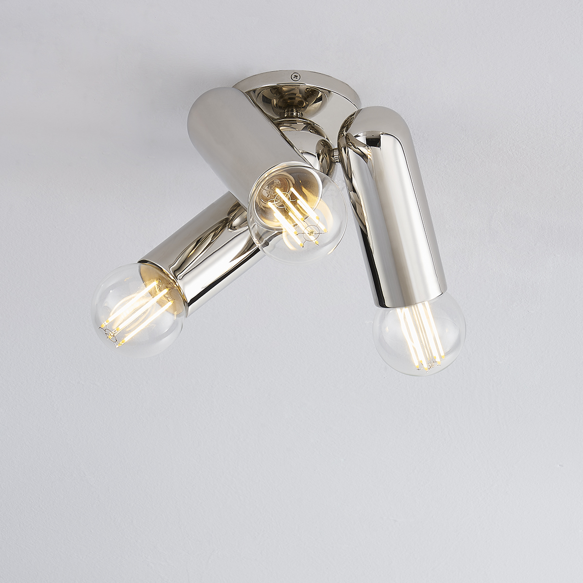 Modern yet industrial, the Lolly Wall Sconce and flush mount captures your attention with sleek curves and a vibrant aged brass or polished nickel finish. Minimalist in nature, Lolly is no wallflower, commanding the room through bold form.