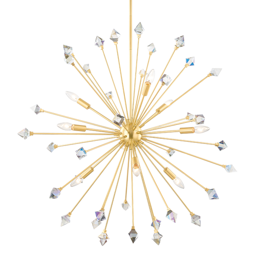 A Mid-century marvel, the sputnik style has captivated design fiends for decades. Genesis reimagines this icon, bringing celestial glamour in starburst form. Dancing between each light source are iridescent crystals, creating prisms of light throughout the room. Finished in aged brass, the Genesis Wall Sconce, Flush Mount, and Chandelier is the statement-making piece you need.