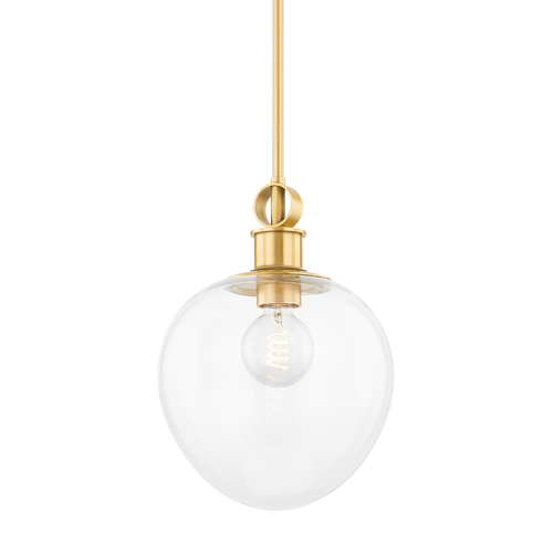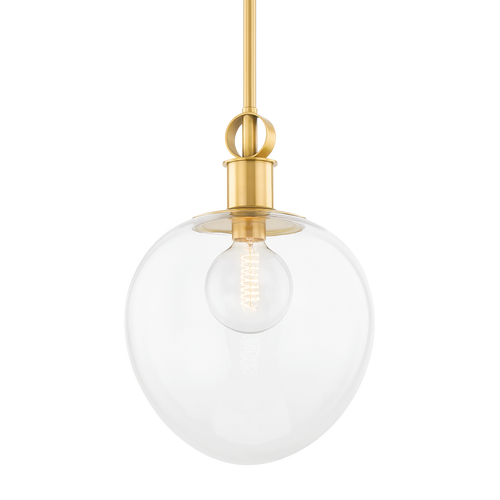 Simple yet savvy, the Anna Pendant is a modern classic that will work in any space. A linear, polished nickel or aged brass pipe drops down to reveal an oval glass dome housing a single light source. Also available in a larger size.