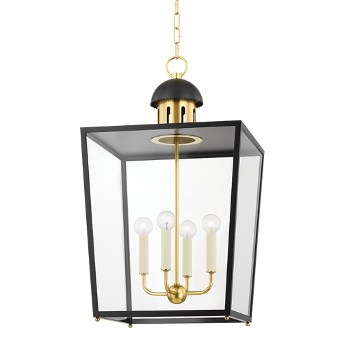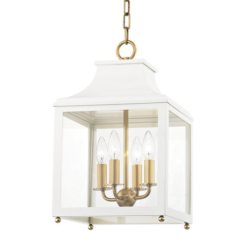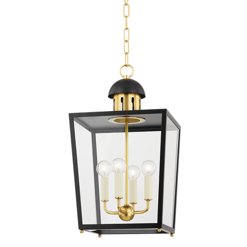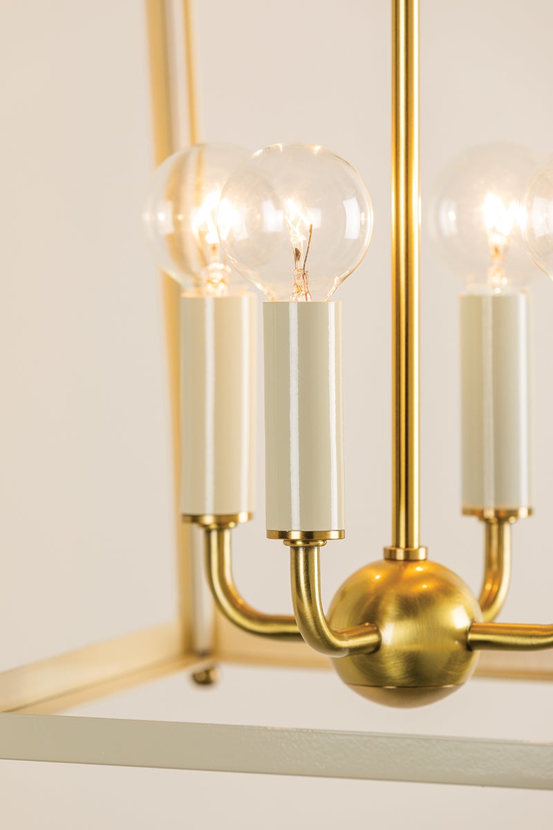 Old world meets new world in this luxe 4-light lantern. Aged brass and soft cream or balck are a delightful duo, complementing the regal frame. A miniature dome at the top of the frame features the most delicate scallop detail, lending a cottage vibe to the classic style. Also available in a larger size.