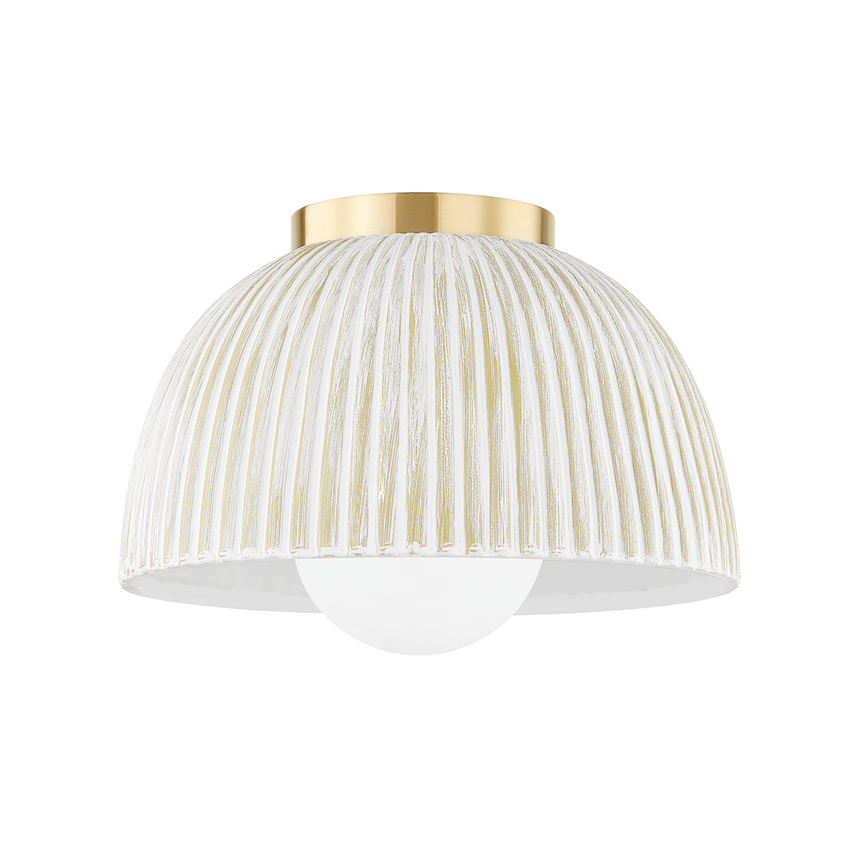 Refined yet casual, the Eloise Flush Mount is our newest coastal crush. The ceramic shade is full of nuance, with an earthy texture popping off the fluted form. A simple aged brass canopy grounds the piece, lending a polished quality to the design.