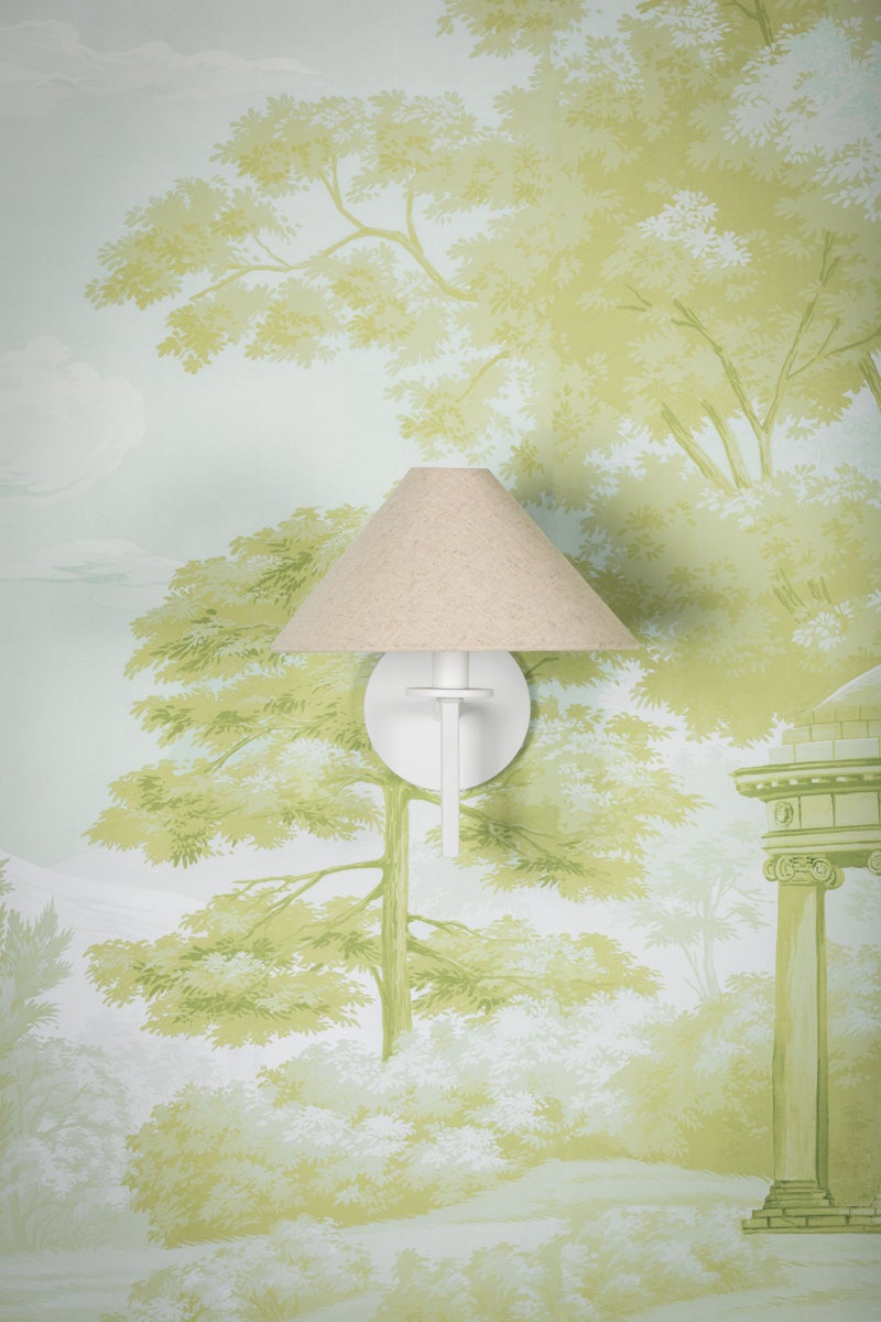 The modern sculptural feel created by Gladwyne's clean lines and sharp angles is softened by the Natural Linen shade and Texture White finish. Make a sophisticated statement overhead or on the wall. The tonal color play blends with a variety of interior styles. Part of our Ariel Okin x Mitzi Tastemakers collection.