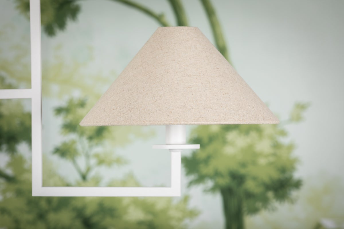 The modern sculptural feel created by Gladwyne's clean lines and sharp angles is softened by the Natural Linen shade and Texture White finish. Make a sophisticated statement overhead or on the wall. The tonal color play blends with a variety of interior styles. Part of our Ariel Okin x Mitzi Tastemakers collection.
