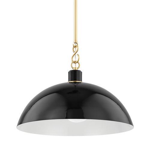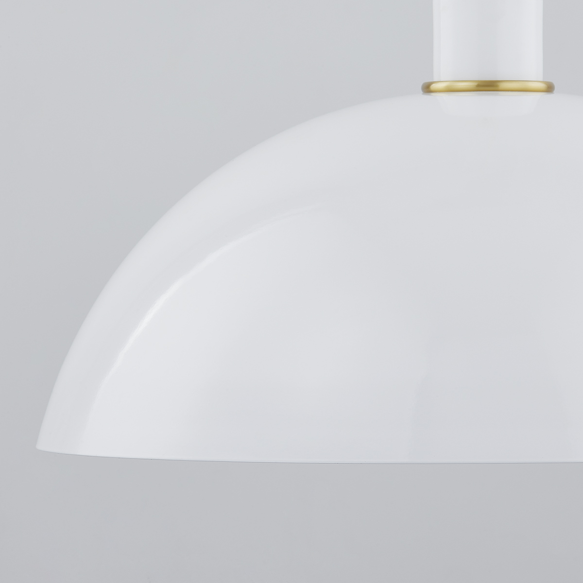 The Camille wall sconce and pendant draws her best features from French design. Aged brass details pop against the glossy black or white dome outfitted with a white interior. From an industrial form to Mid-century styling, Camille may be vintage inspired but was certainly made for modern homes.