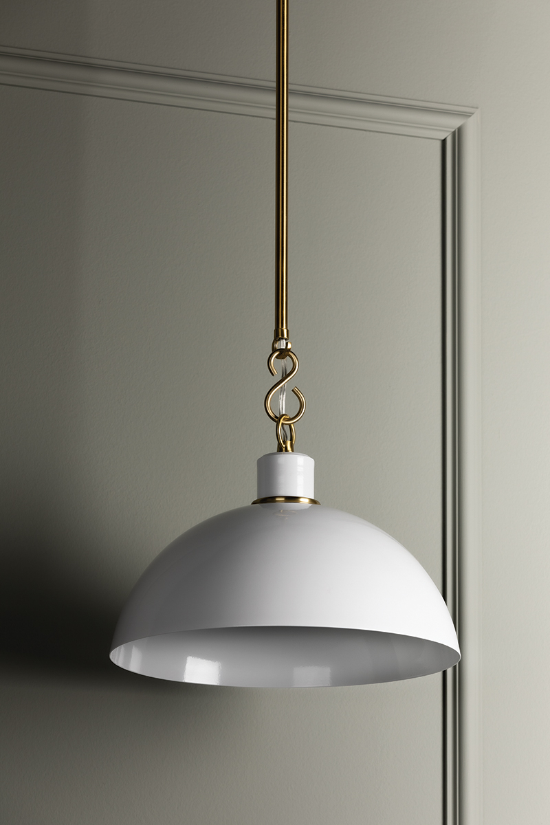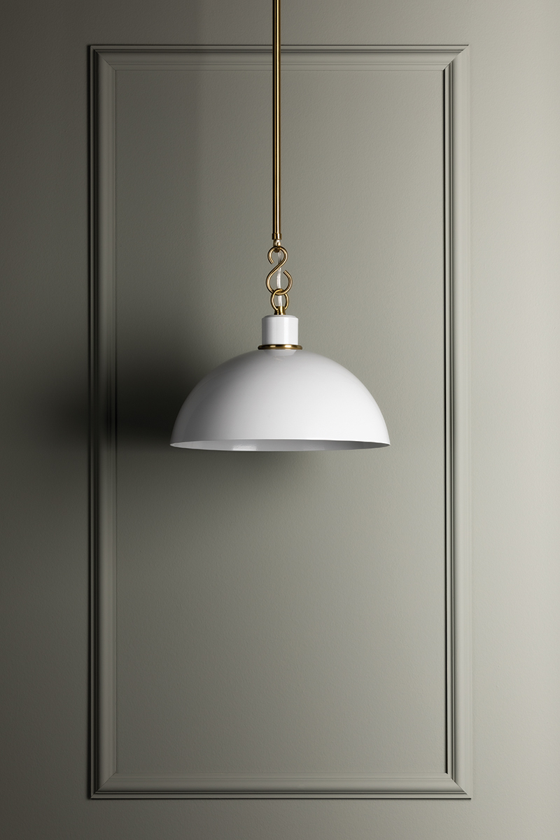 The Camille wall sconce and pendant draws her best features from French design. Aged brass details pop against the glossy black or white dome outfitted with a white interior. From an industrial form to Mid-century styling, Camille may be vintage inspired but was certainly made for modern homes.