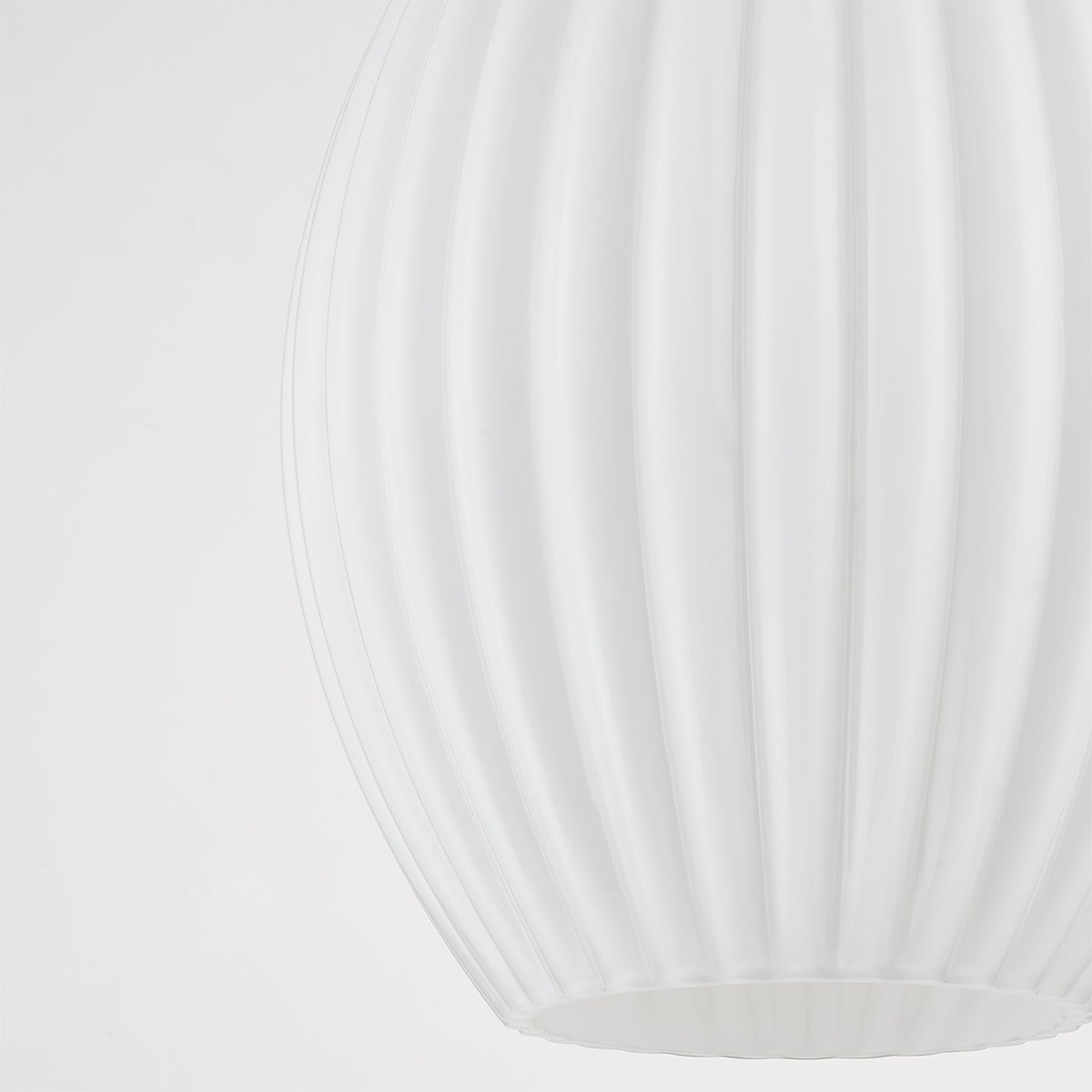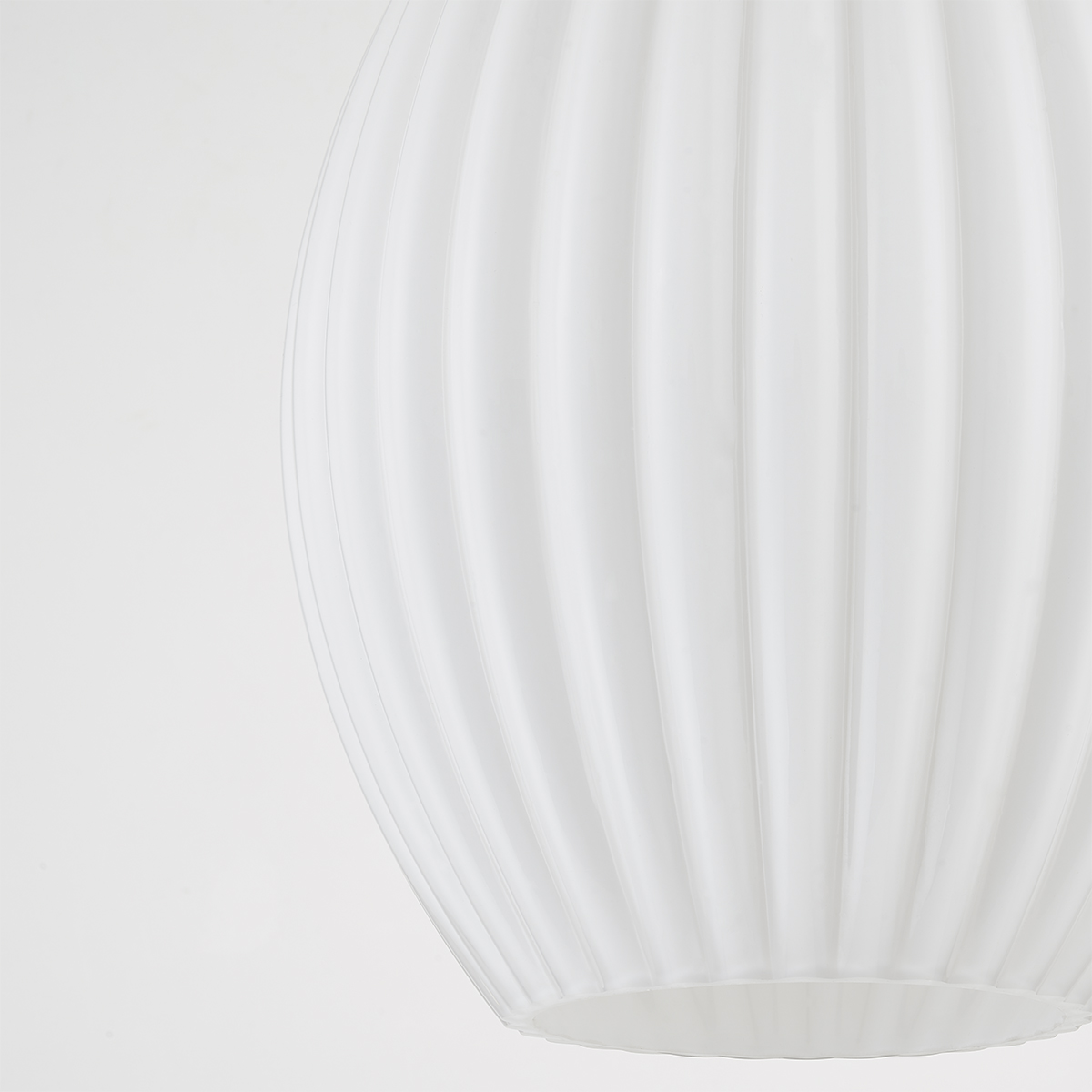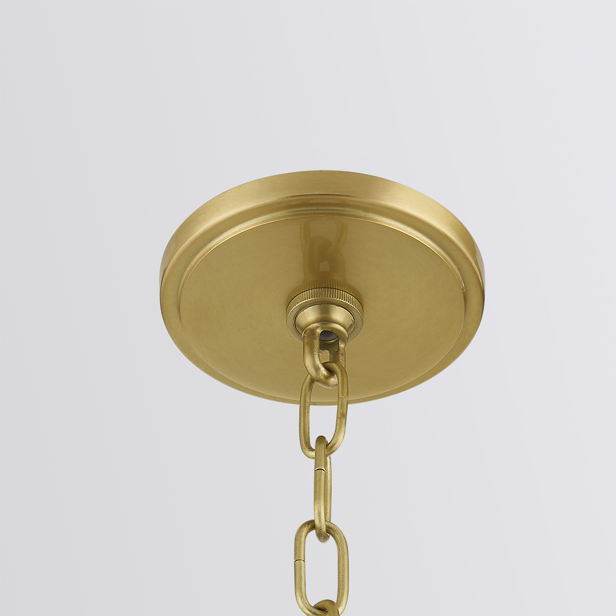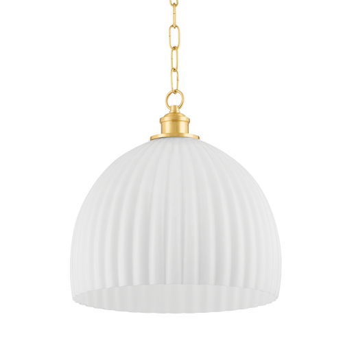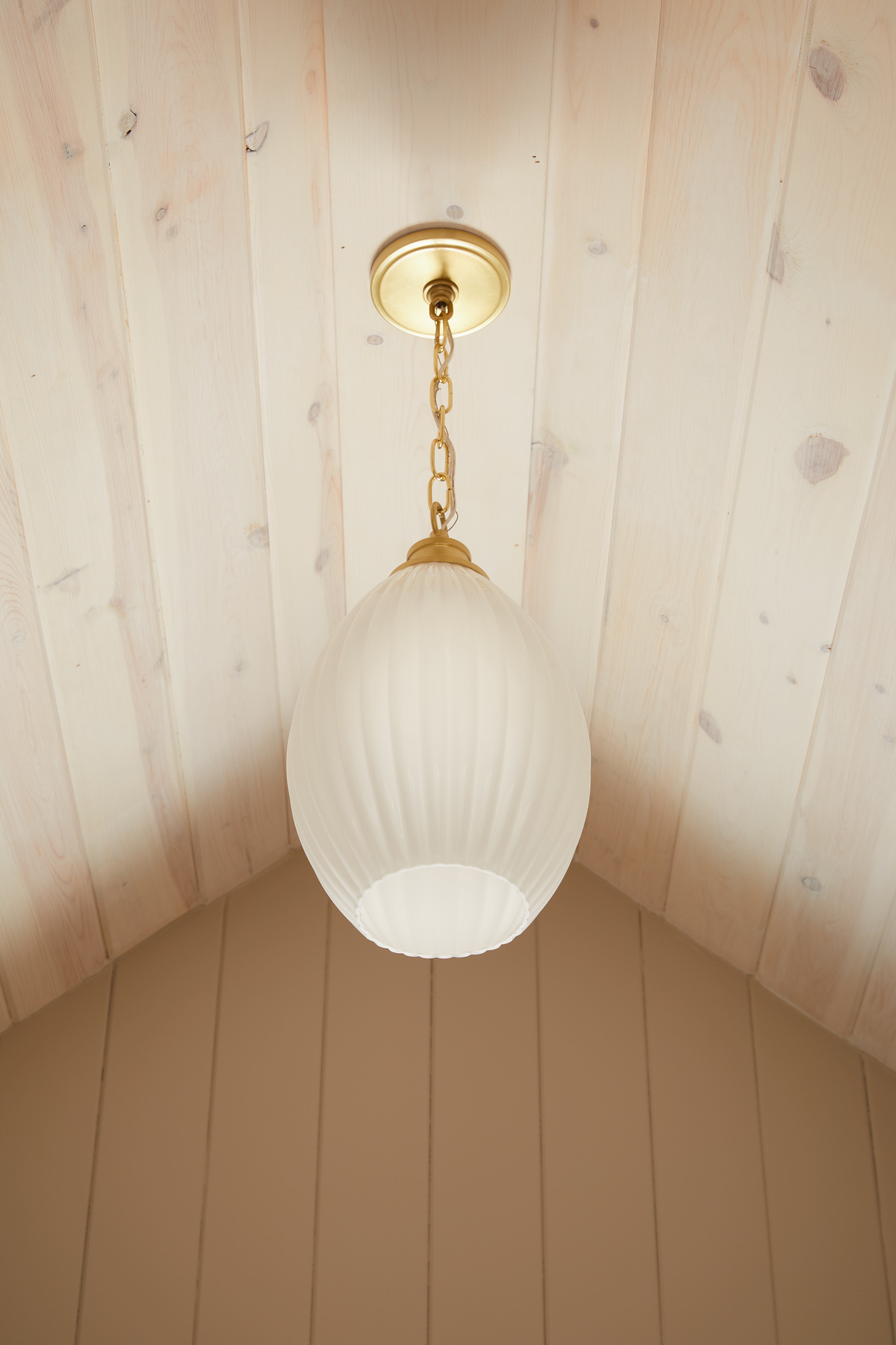 Hillary captures the cottage charm captivating the design world. The single light pendant, available in aged brass and old bronze features a fluted glass shade dangling elegantly from the chain. Stunning on its own, this antique darling proves better in pairs, layered in multiples over a kitchen island or dining scene. Also available in a smaller size.