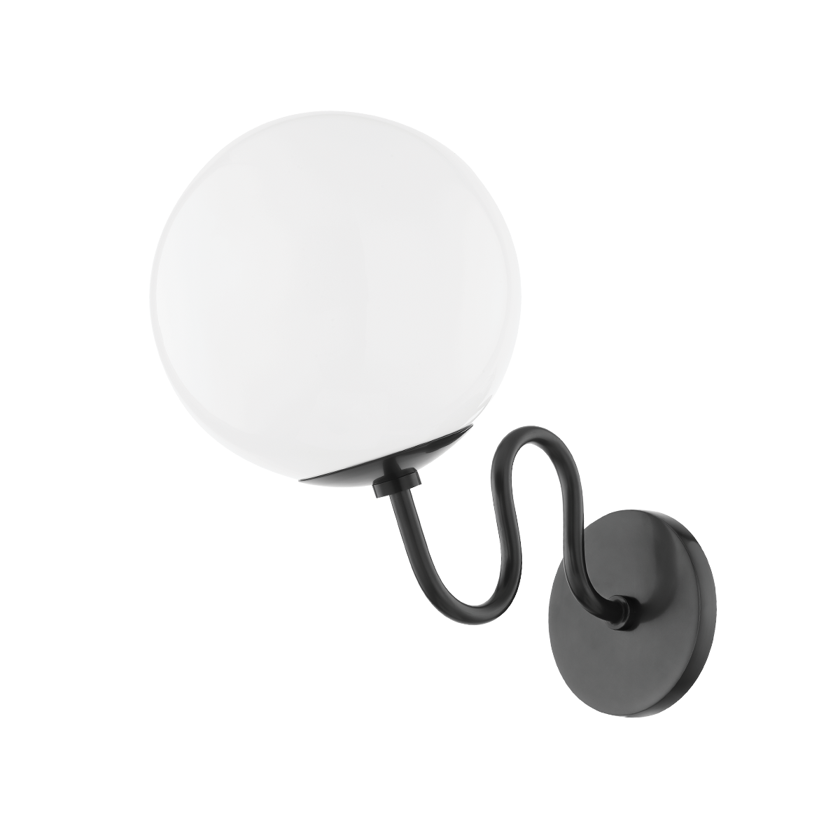 Art nouveau meets midcentury Italian, the Havana wall sconce and chandelier indulge in of-the-moment, whimsical design. Available in aged brass, old bronze, and polished nickel, Havana is engaged in shape play and features a wavy arm and glossy opal globe shade. Available in small and large chandelier.