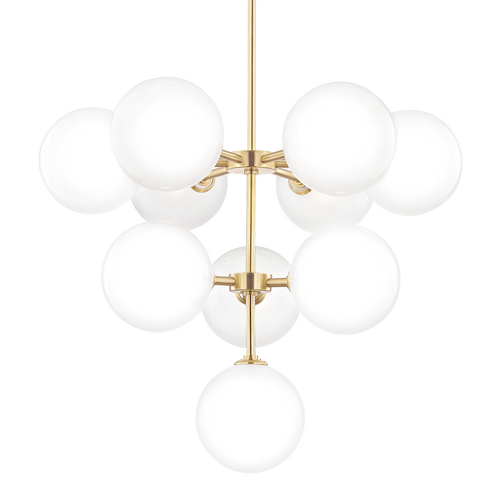 Art nouveau meets midcentury Italian, the Havana wall sconce and chandelier indulge in of-the-moment, whimsical design. Available in aged brass, old bronze, and polished nickel, Havana is engaged in shape play and features a wavy arm and glossy opal globe shade. Available in small and large chandelier.