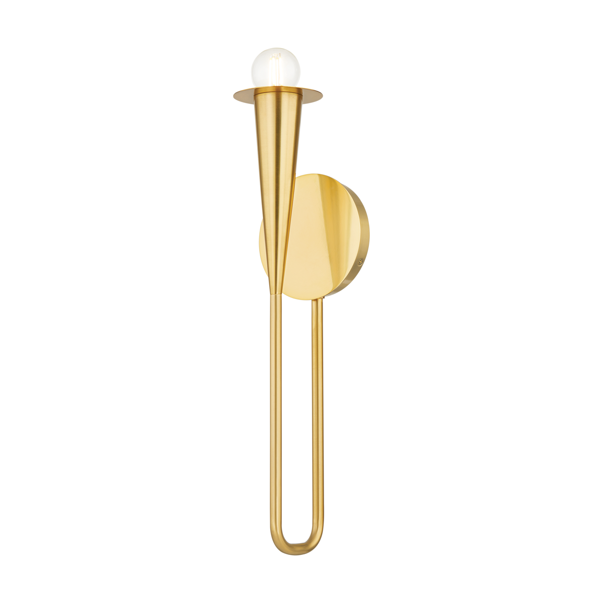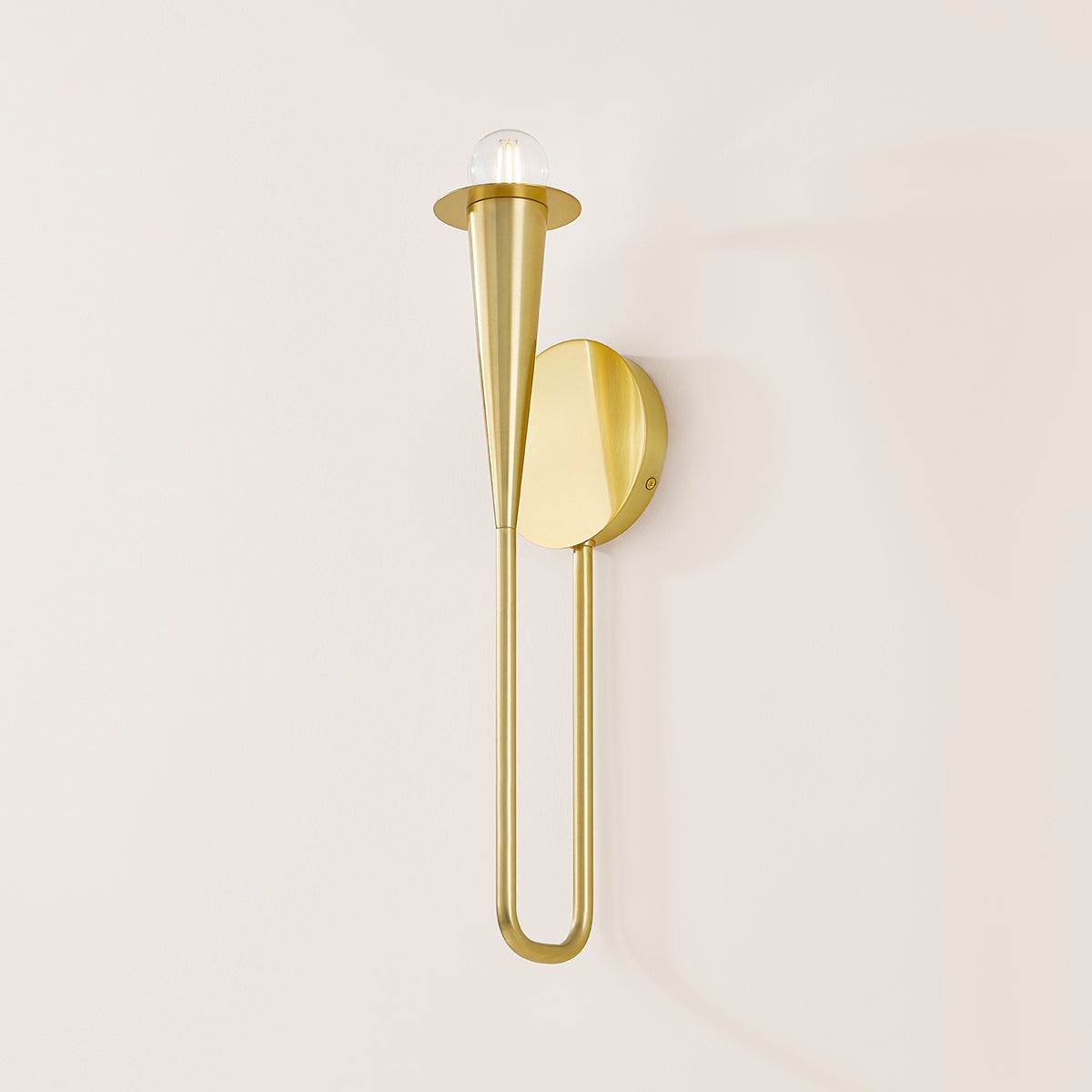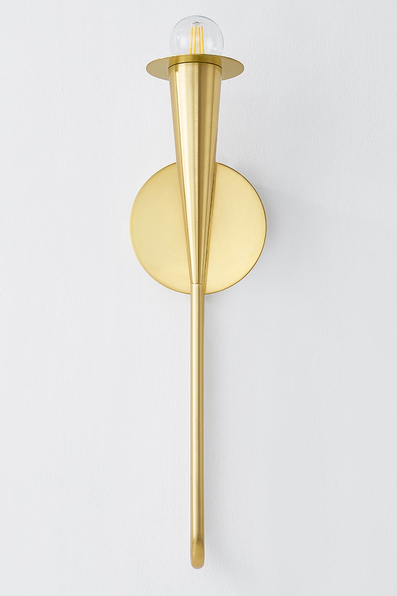 Bring the drama with this botanical-meets-industrial beauty. Slender candlesticks resembling torches support clear glass orbs as they illuminate modern interiors with a sense of retro flair. Available as a sconce or chandelier in two sizes in either an Aged Brass or Old Bronze finish. Part of THELIFESTYLEDCO® collection.