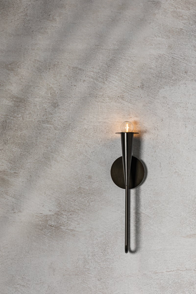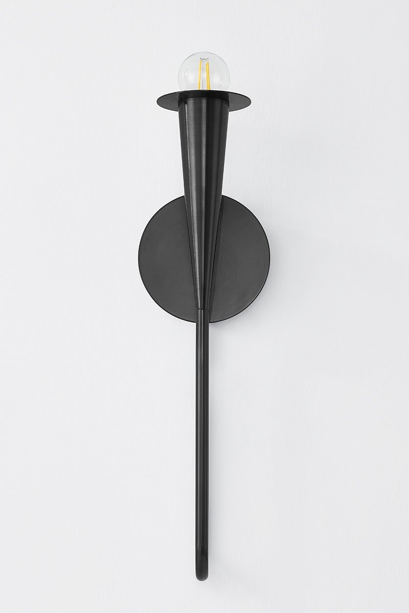 Bring the drama with this botanical-meets-industrial beauty. Slender candlesticks resembling torches support clear glass orbs as they illuminate modern interiors with a sense of retro flair. Available as a sconce or chandelier in two sizes in either an Aged Brass or Old Bronze finish. Part of THELIFESTYLEDCO® collection.