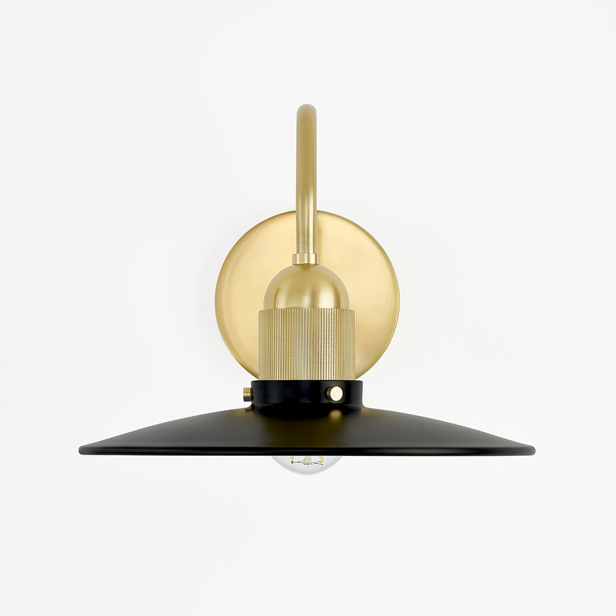 A beautifully modern take on the farmhouse pendant, Leanna features a very slim reflector shade in Soft Cream or Soft Black. Deliberate space between the shade and socket cup allows light to shine on the Aged Brass knurled detailing above as well as reflect off the shade itself. The sconce brings a modern mood to any wall and the pendant, with its delicate hook and loop suspension, is stunning styled in multiples over the kitchen island.