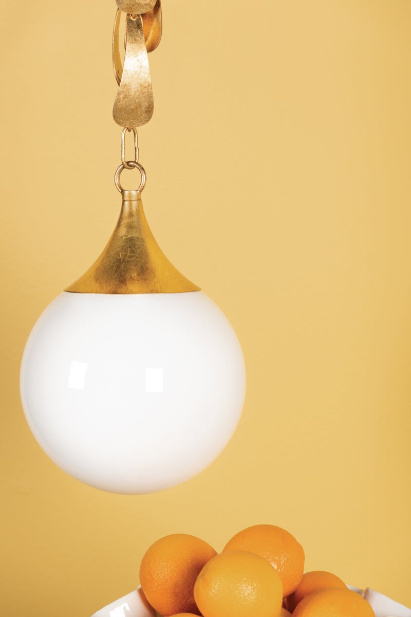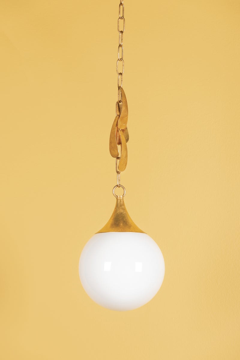 Victoria brings modern style to ceilings throughout the home. Smooth, curved lines and a mobile-inspired design add elegance and a sense of movement to the chic three-light chandelier. While delicate, petal-shaped accents in Vintage Gold Leaf elevate the familiar silhouette of the opal glossy globe pendant. The chandelier comes in a Vintage Gold Leaf or Textured Black finish and the pendant is available in two sizes. Part of our Home Ec. x Mitzi Tastemakers collection.