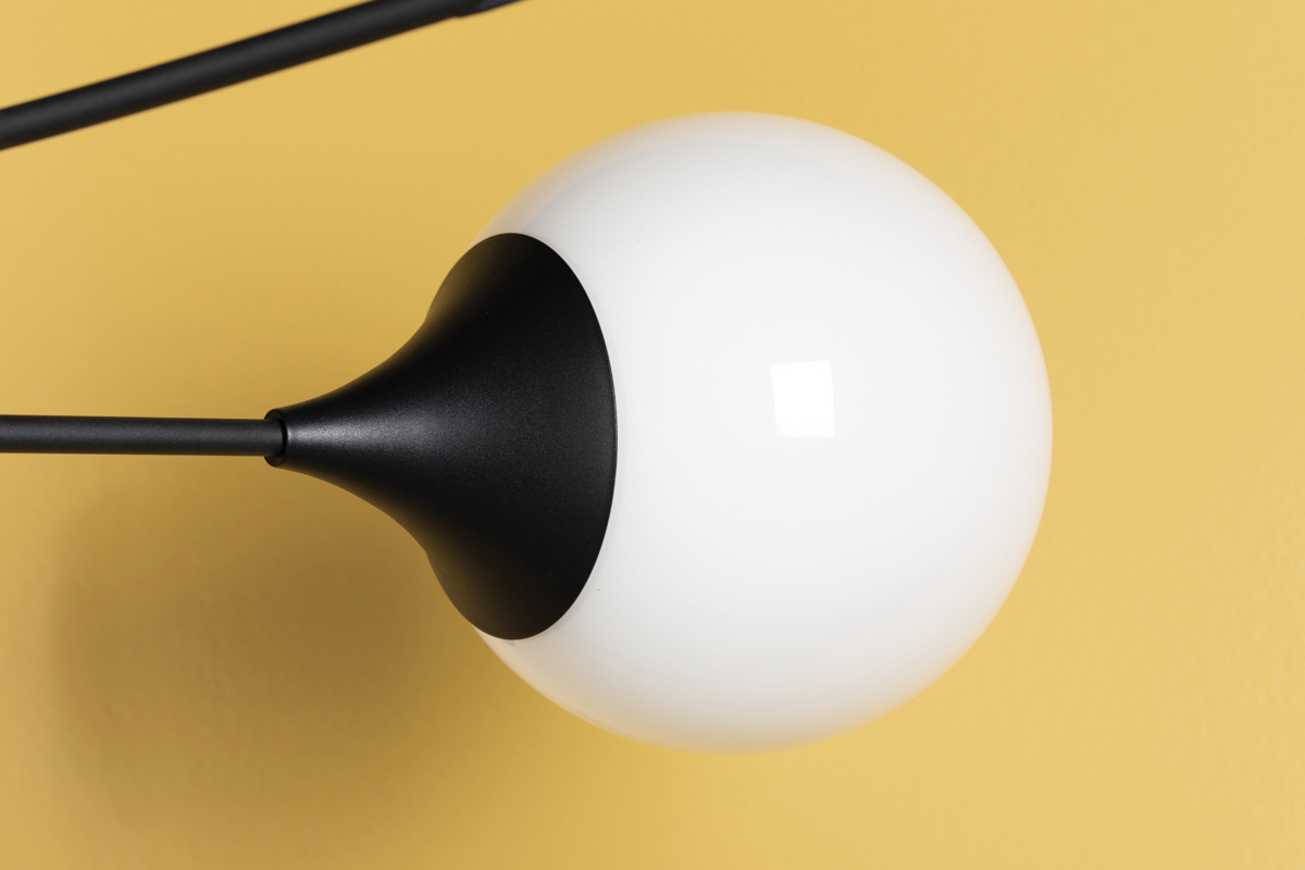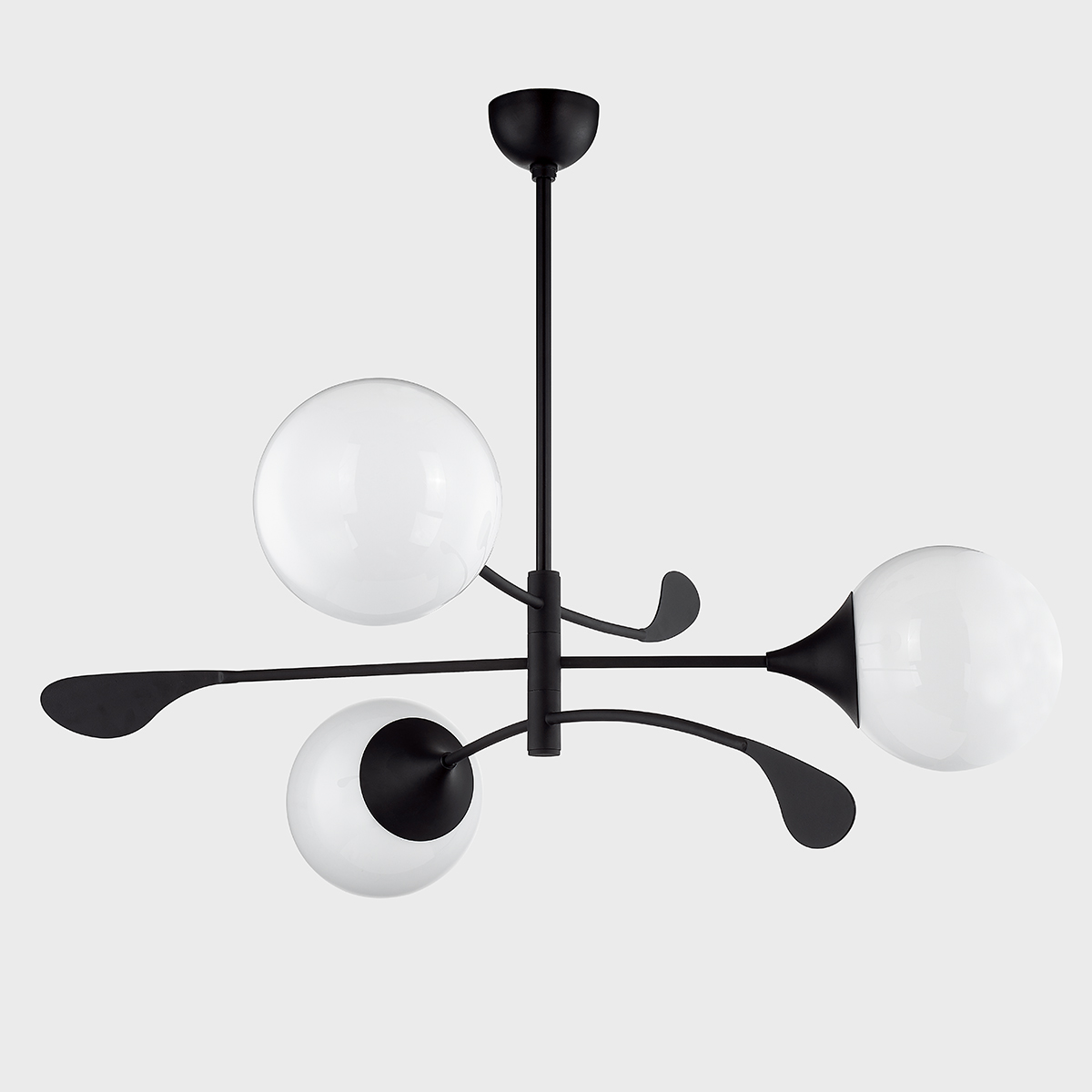 Victoria brings modern style to ceilings throughout the home. Smooth, curved lines and a mobile-inspired design add elegance and a sense of movement to the chic three-light chandelier. While delicate, petal-shaped accents in Vintage Gold Leaf elevate the familiar silhouette of the opal glossy globe pendant. The chandelier comes in a Vintage Gold Leaf or Textured Black finish and the pendant is available in two sizes. Part of our Home Ec. x Mitzi Tastemakers collection.