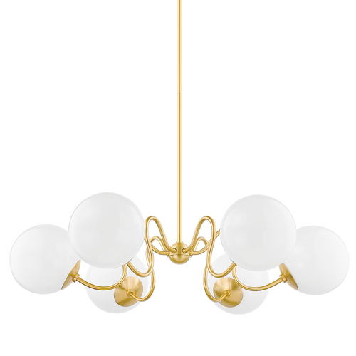 Victoria brings modern style to ceilings throughout the home. Smooth, curved lines and a mobile-inspired design add elegance and a sense of movement to the chic three-light chandelier. While delicate, petal-shaped accents in Vintage Gold Leaf elevate the familiar silhouette of the opal glossy globe pendant. The chandelier comes in a Vintage Gold Leaf or Textured Black finish and the pendant is available in two sizes. Part of our Home Ec. x Mitzi Tastemakers collection.