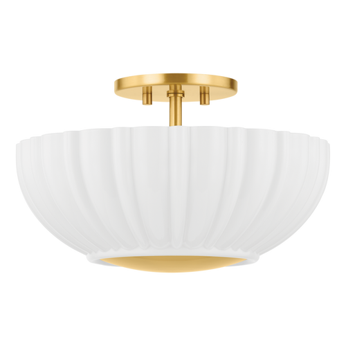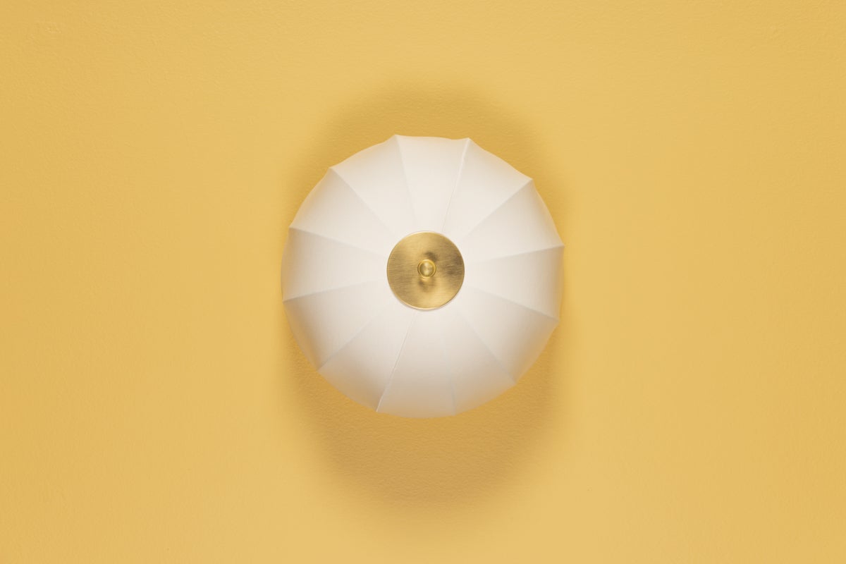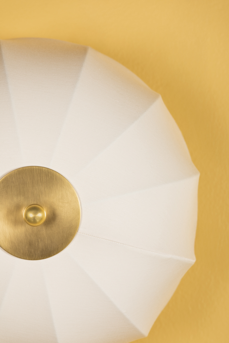 Inspired by mid-century Danish design, Meshelle features a whimsical umbrella shape. Light flows both through the shade and softly glows around it. Aged Brass accents on the finials, chain detailing, and the floor lamp's pull chain, add a sophisticated touch to this usable fixture. Part of our Home Ec. x Mitzi Tastemakers collection.
