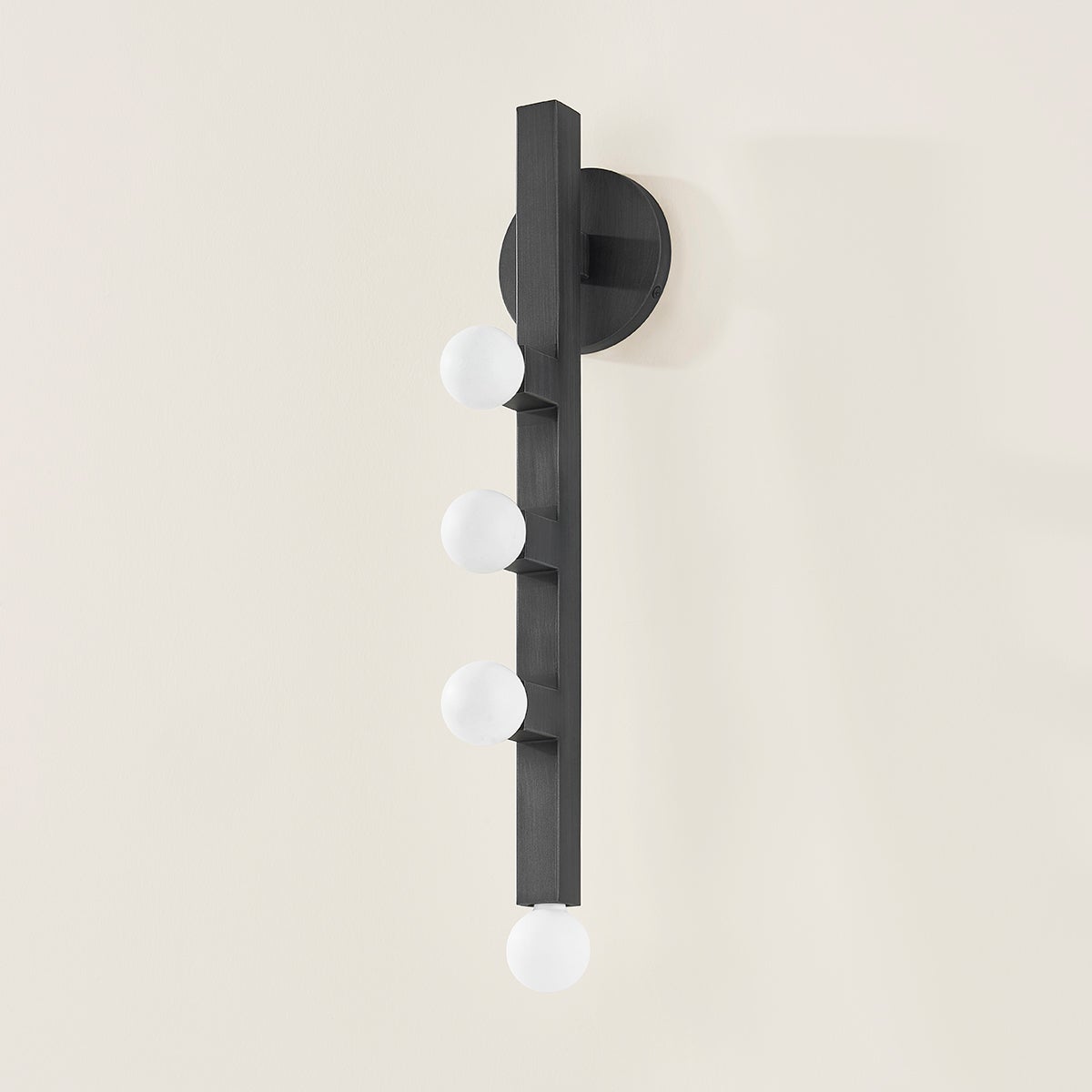 Merging modern simplicity with decorative flair, Sutter plays with parallels. Glass orbs are arranged with thoughtful asymmetries to create balance along a slender frame. Like a Mondrian painting, lines merge and intersect && except when they don't. Available as a sconce or chandelier in either a warm Vintage Gold Leaf or industrial Graphite finish. Part of THELIFESTYLEDCO® collection.