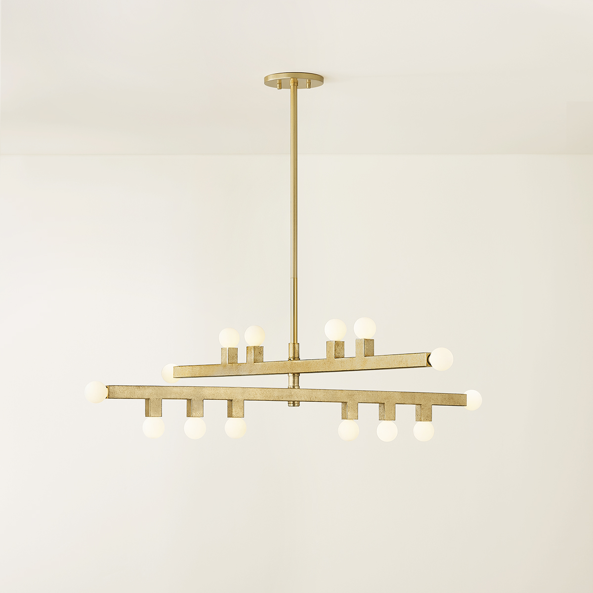Merging modern simplicity with decorative flair, Sutter plays with parallels. Glass orbs are arranged with thoughtful asymmetries to create balance along a slender frame. Like a Mondrian painting, lines merge and intersect && except when they don't. Available as a sconce or chandelier in either a warm Vintage Gold Leaf or industrial Graphite finish. Part of THELIFESTYLEDCO® collection.