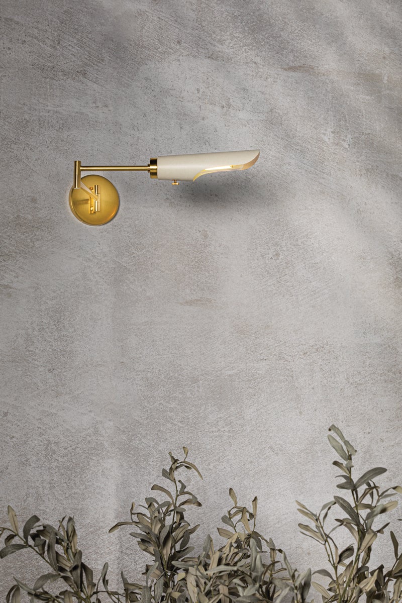 Sculptural and statement-making, Harperrose combines clean-line modernism with a playful touch. Recalling the clouds, this mobile-inspired design features an Aged Brass framework with shades in a Soft White finish. Mixing form with function, it directs light downwards, providing illumination over a large area. Available as a chandelier or wall sconce. Part of THELIFESTYLEDCO® collection.