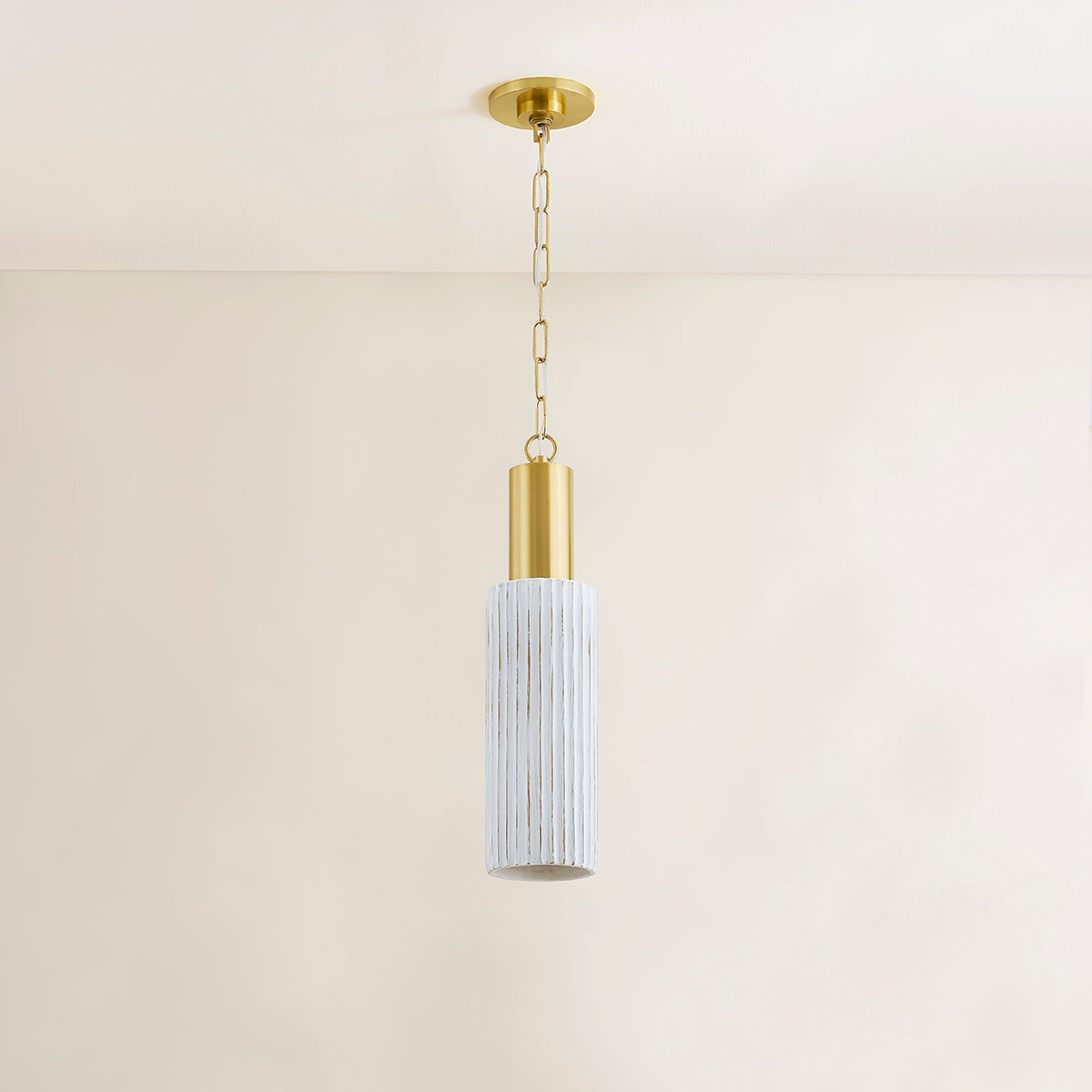 Treading the line between classic architecture and contemporary minimalism, Corissa features a cylindrical body reminiscent of a Roman column. Crafted from fluted Whitewashed Bisque, the fixture is balanced by a flawless Aged Brass cap and chain. Whether as a pendant light or flush mount, Corissa's silhouette exudes depth and character, making a chic statement in hallways and kitchens. Part of THELIFESTYLEDCO® collection.
