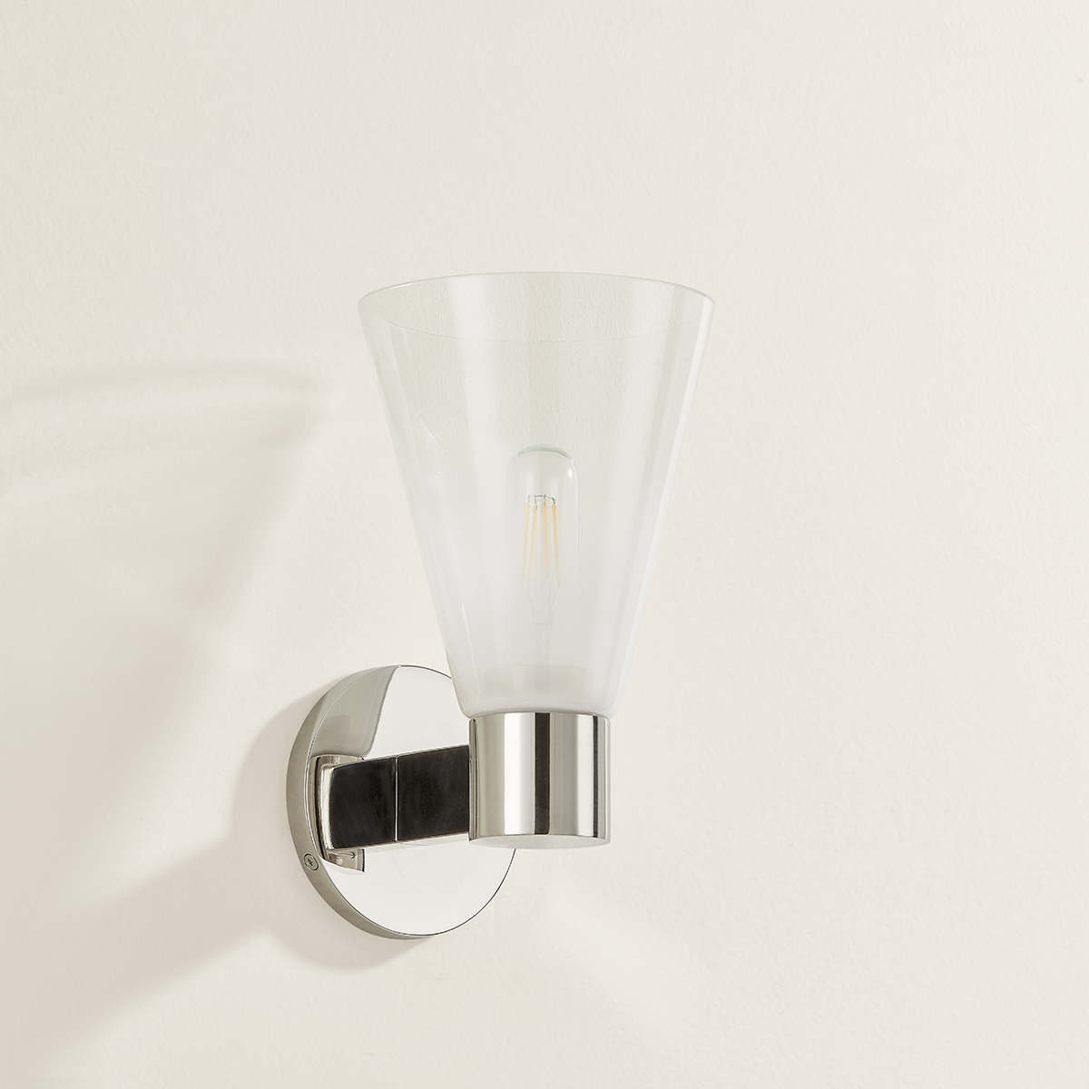 Elevating basic geometric shapes, the Alma sconce balances delicate Sfumato glass with sleek metalwork. The hand-blown glass shades subtly reveal the light source within, creating a soft emission of light. Available in a 1 or 2-light sconce, Alma is refreshing in its simplicity.