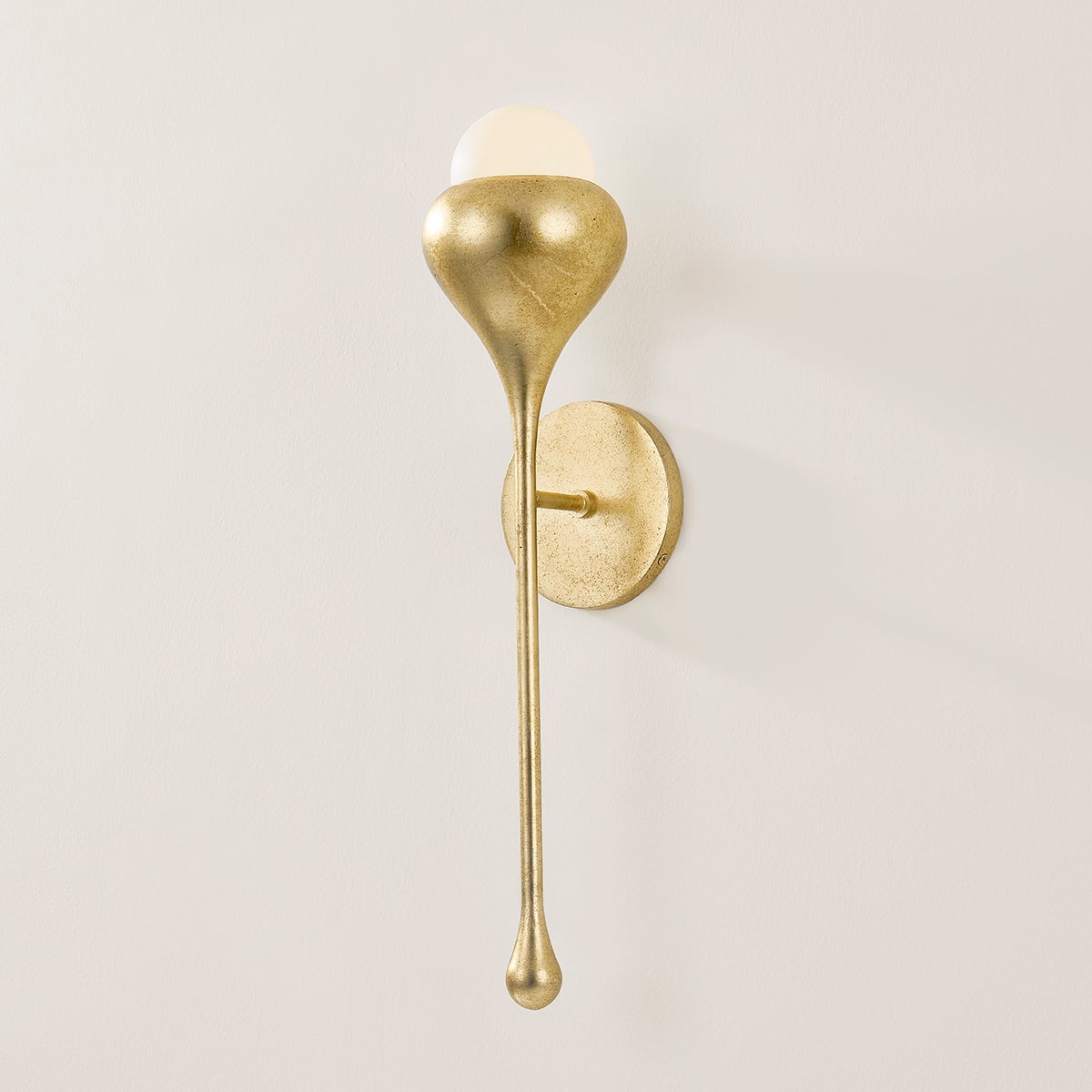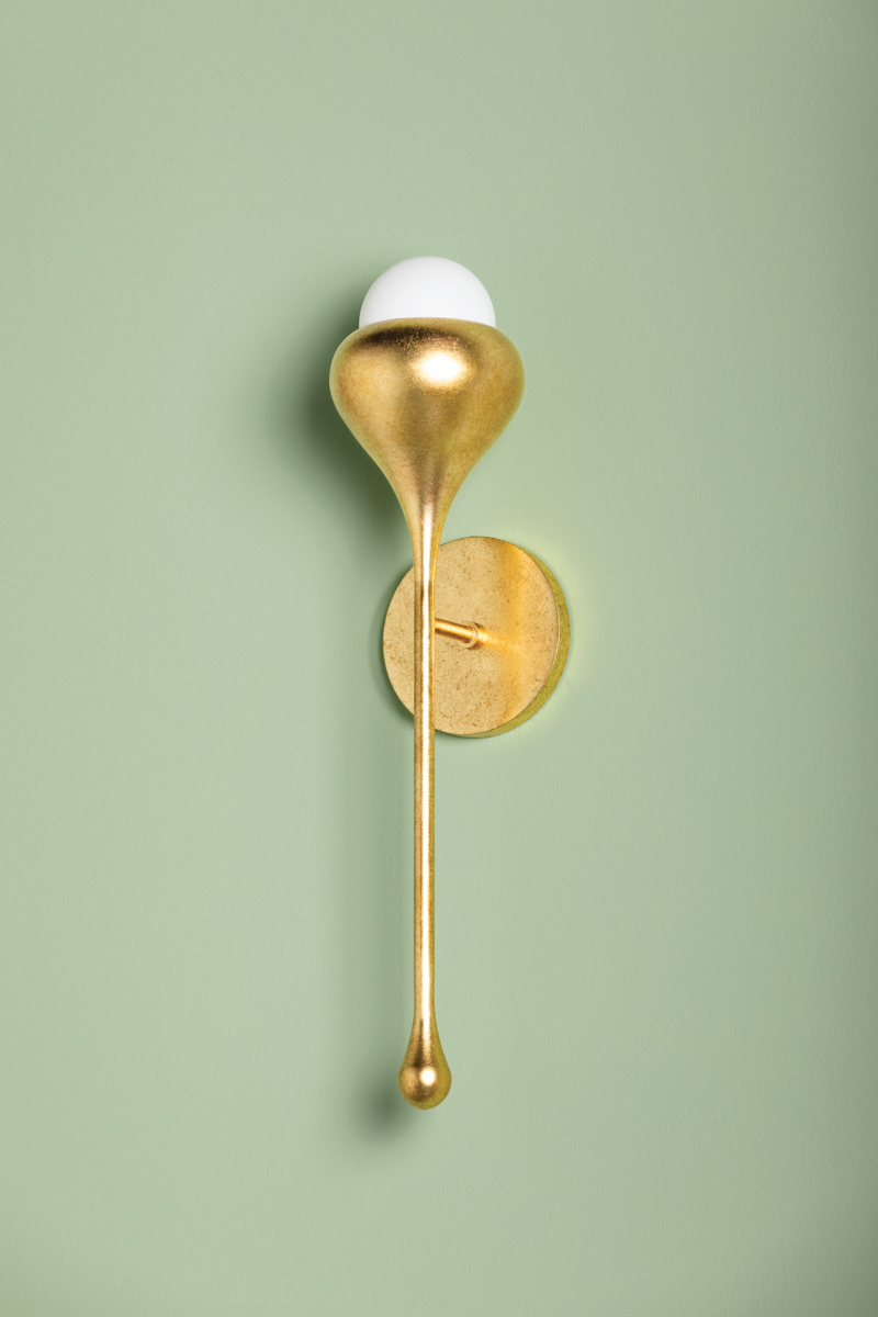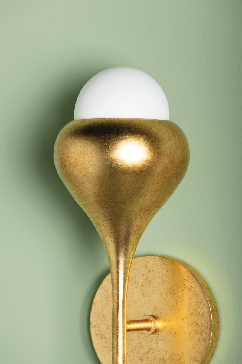 Inspired by an acorn growing on a branch, Luciel features gently curved forms, soft Opal Shiny Glass shades, and a luxurious Vintage Gold Leaf finish. The refined, jewelry-like aesthetic of the fixture is elongated to create a surreal, otherworldly representation of nature. Luciel is available as a sconce, chandelier, and pendant.